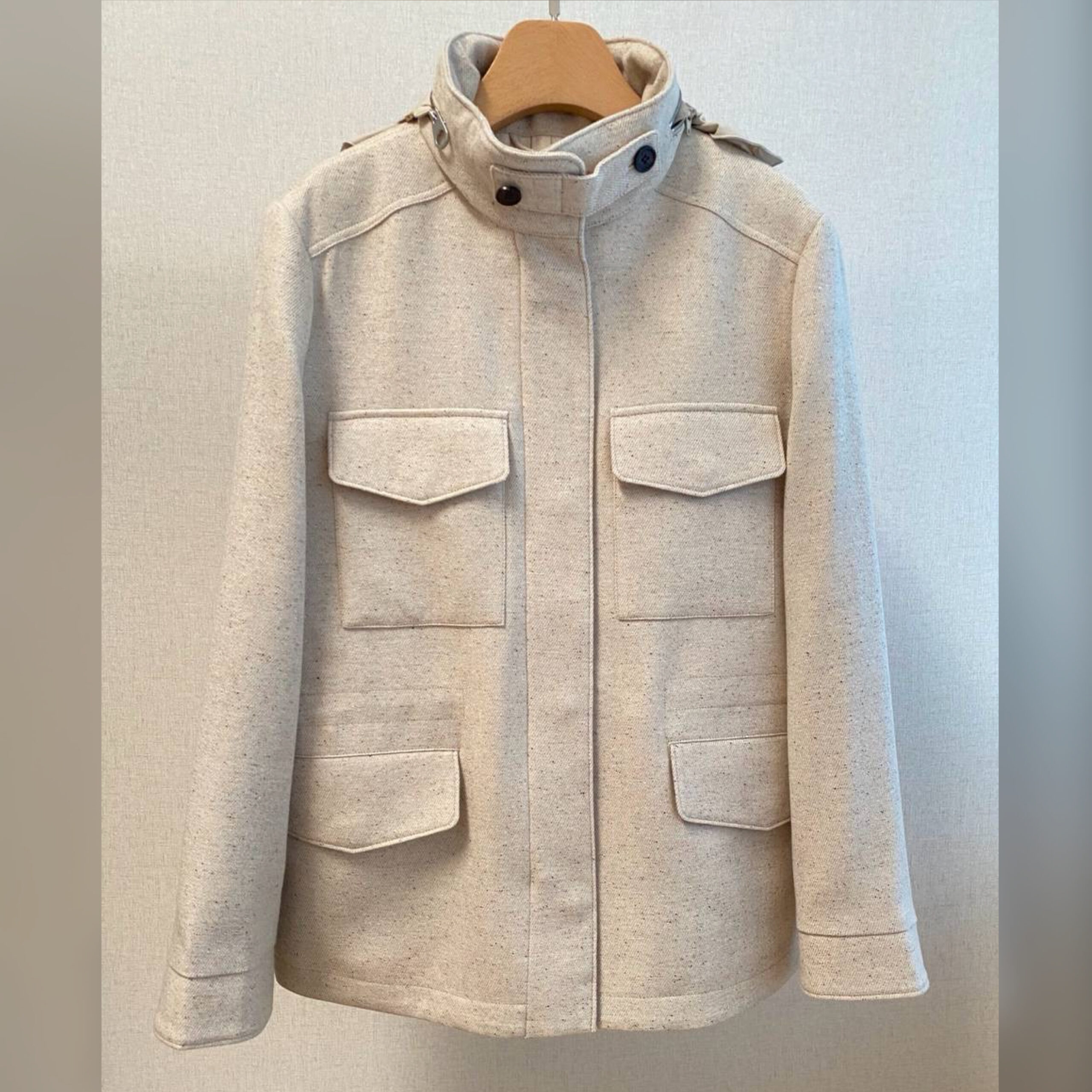 За основу изделия мастера марки взяли мужскую модель Traveller: у нее позаимствовали четыре накладных кармана и воротник-стойку, застегивающийся широким ремешком.