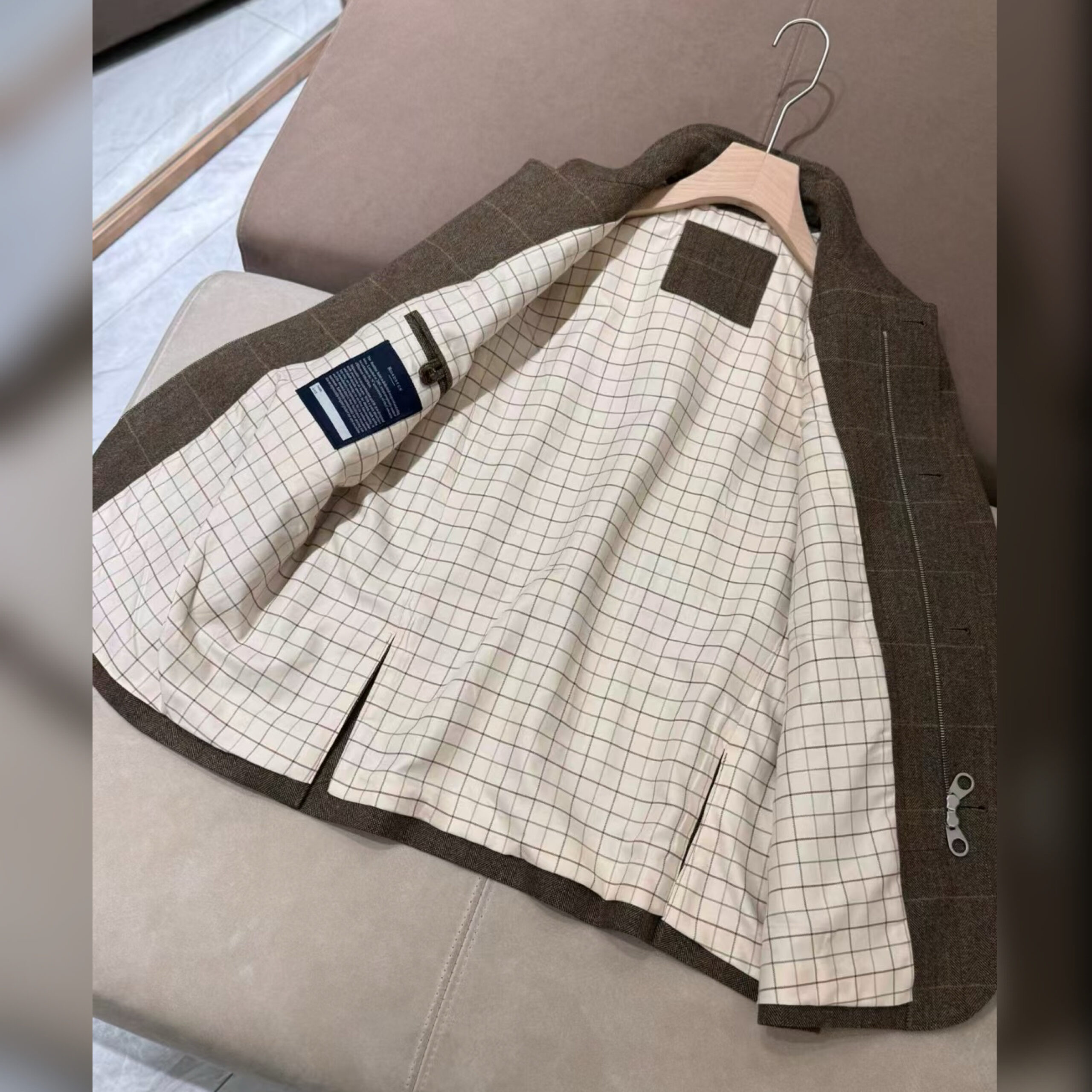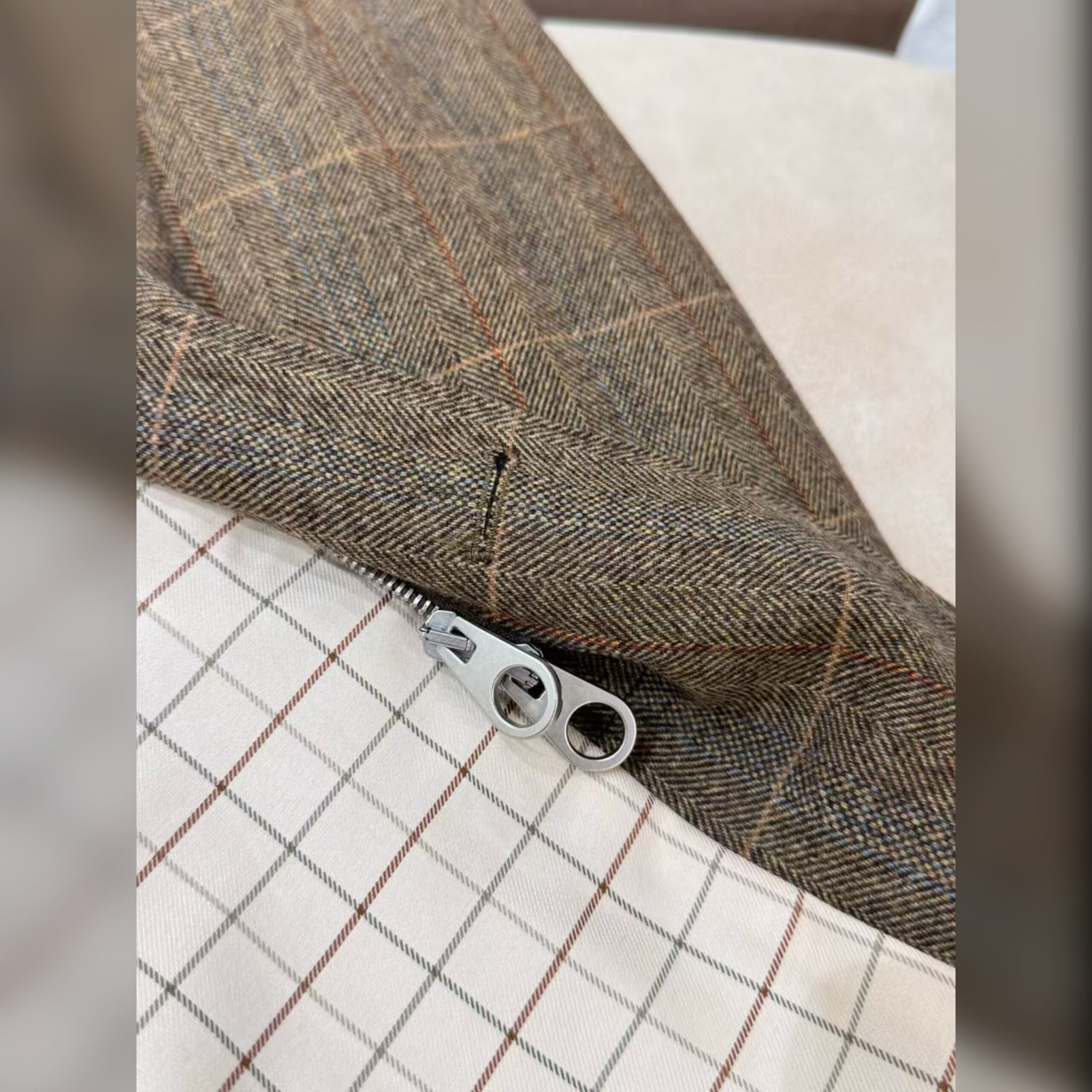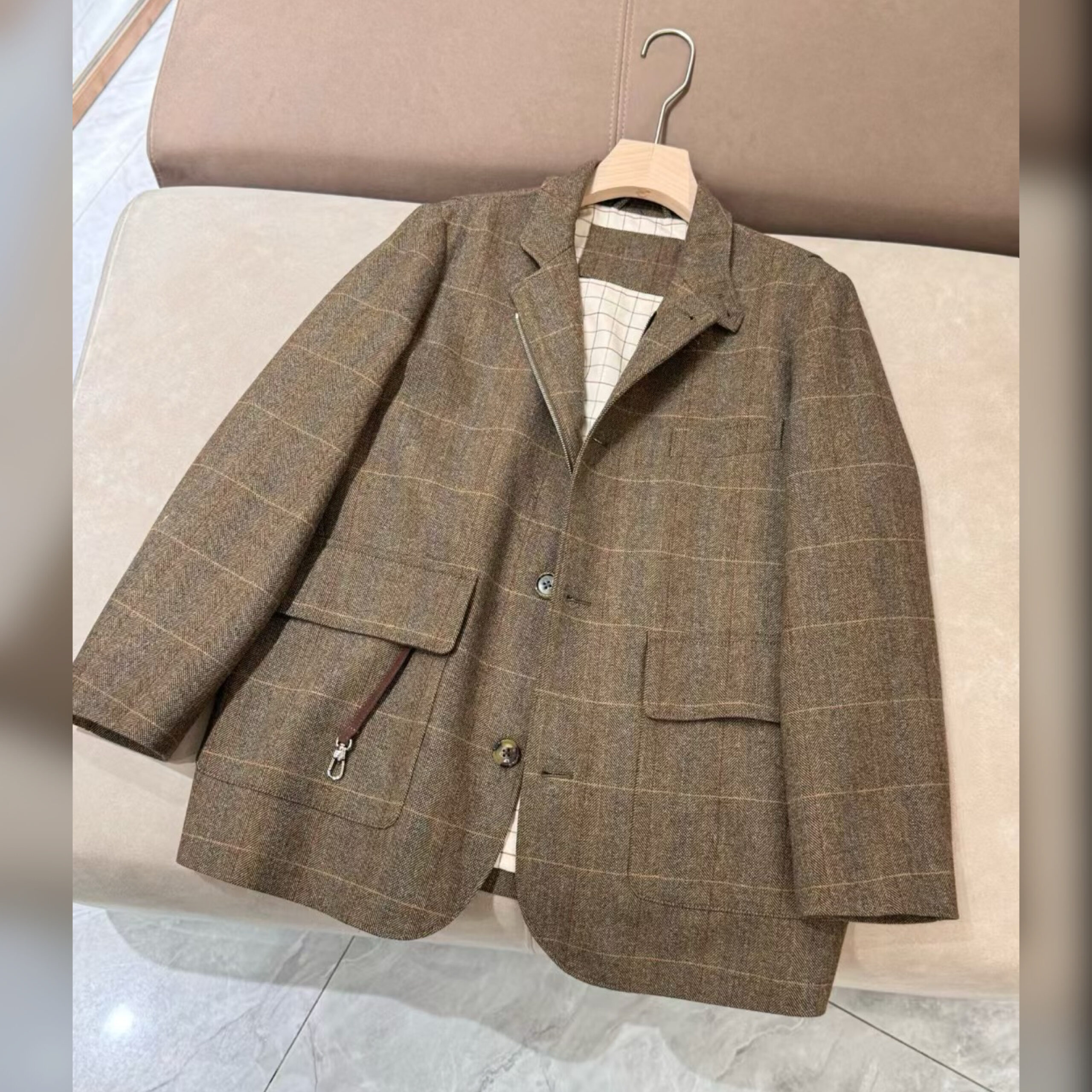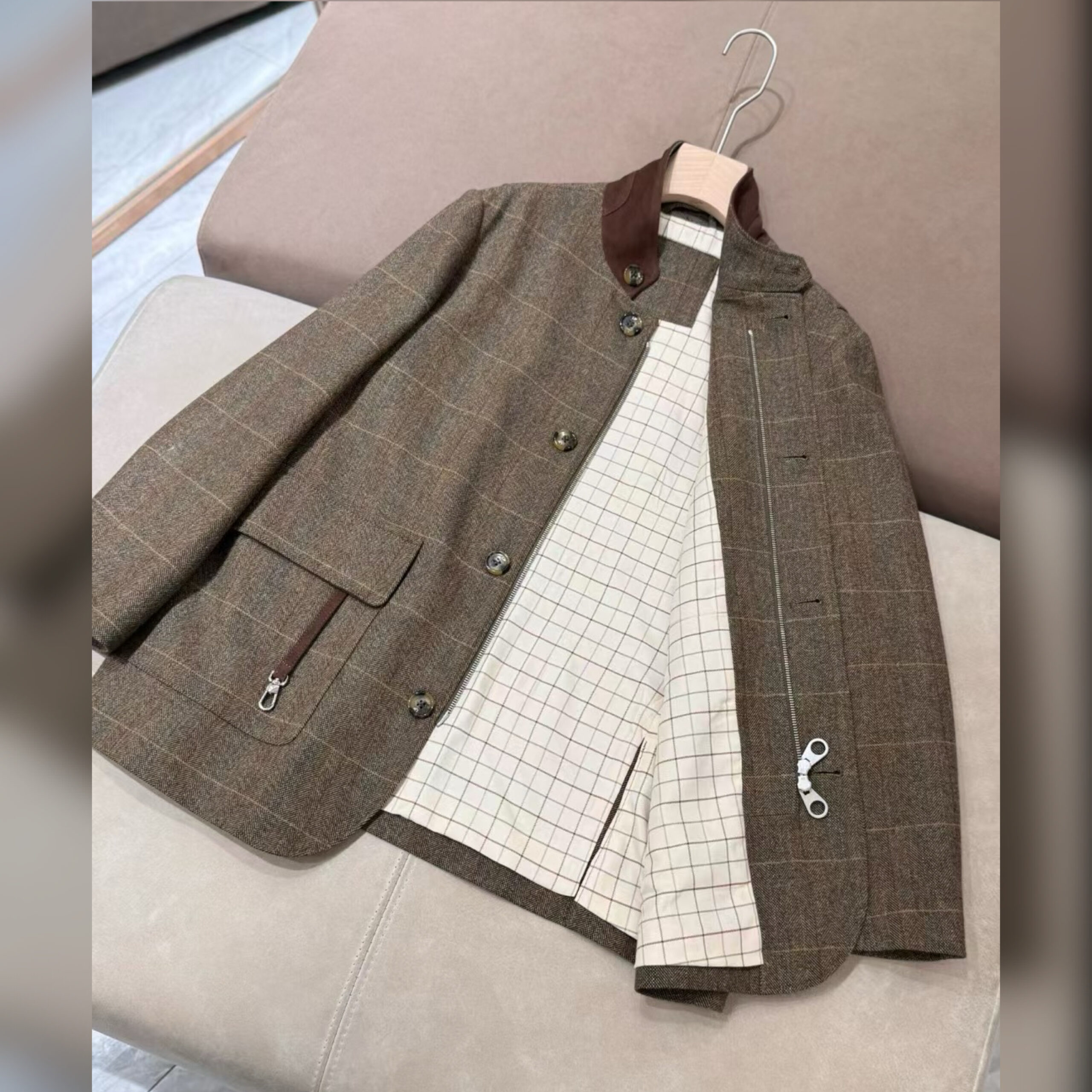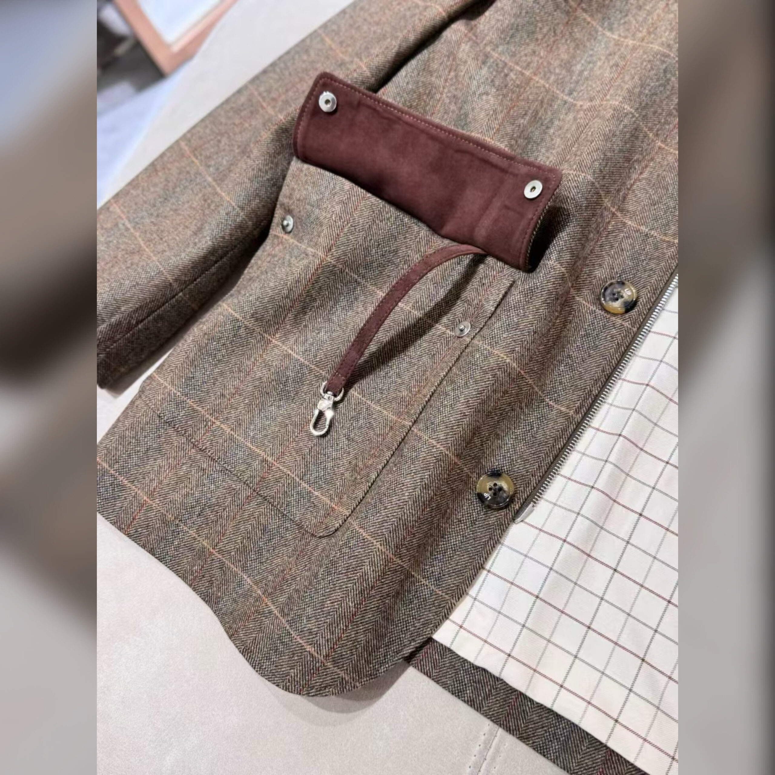 В осенне-зимнюю коллекцию вошла куртка Roadster с узором в клетку. Ее дизайн взят из архивов марки: прототипом стала знаковая модель Roadster Villa d’Este. Модель сшита из шерсти и кашемира. Мягкий плотный материал защищен обработкой от воды, грязи и ветра. Изделие дополнили воротником-стойкой с отделкой из замши. С этой деталью зарифмовали подкладку на клапанах накладных карманов и шнурок с карабином, спрятанный в одном из них.