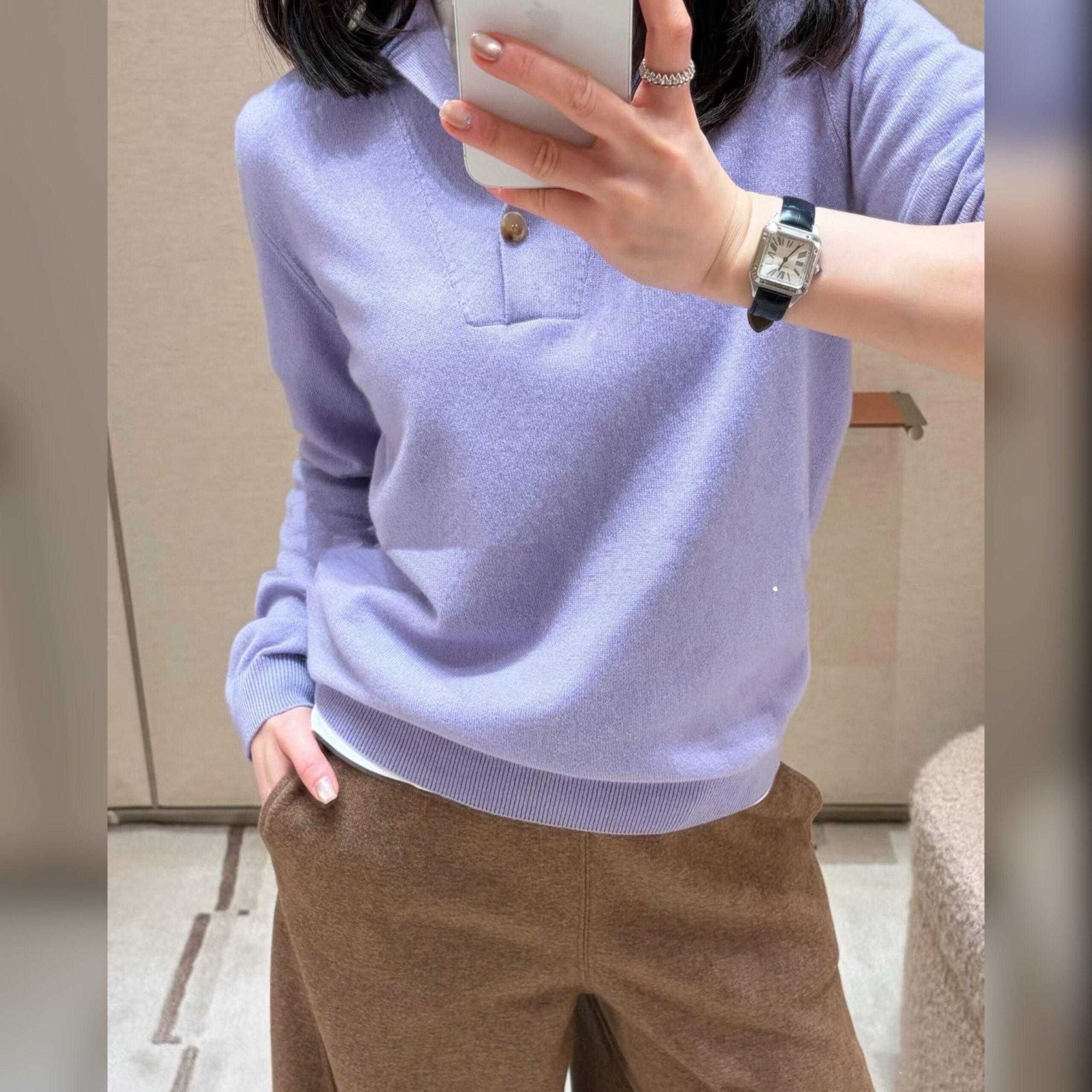 Единственным украшением выступает роговая пуговица, подчеркивающая воротник.