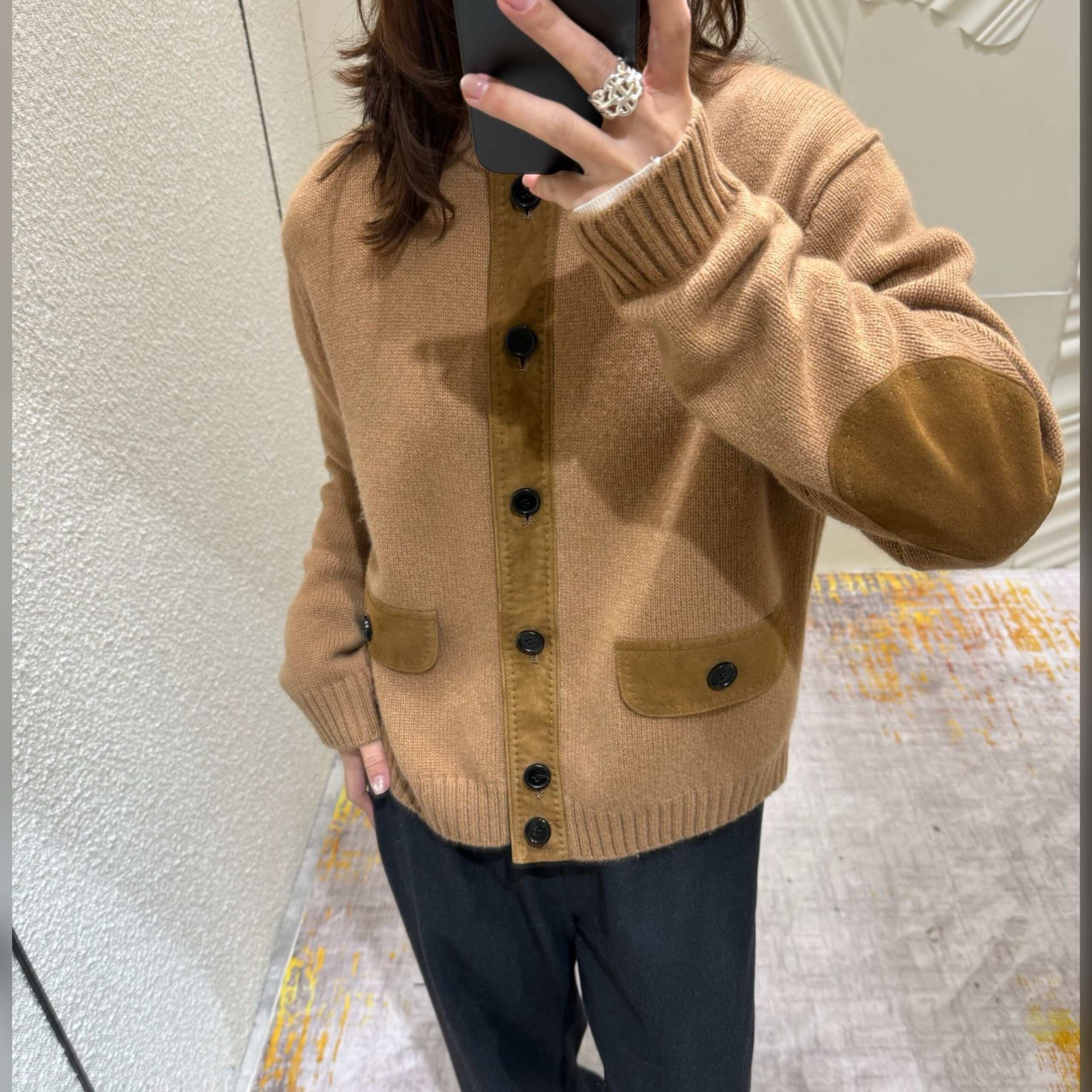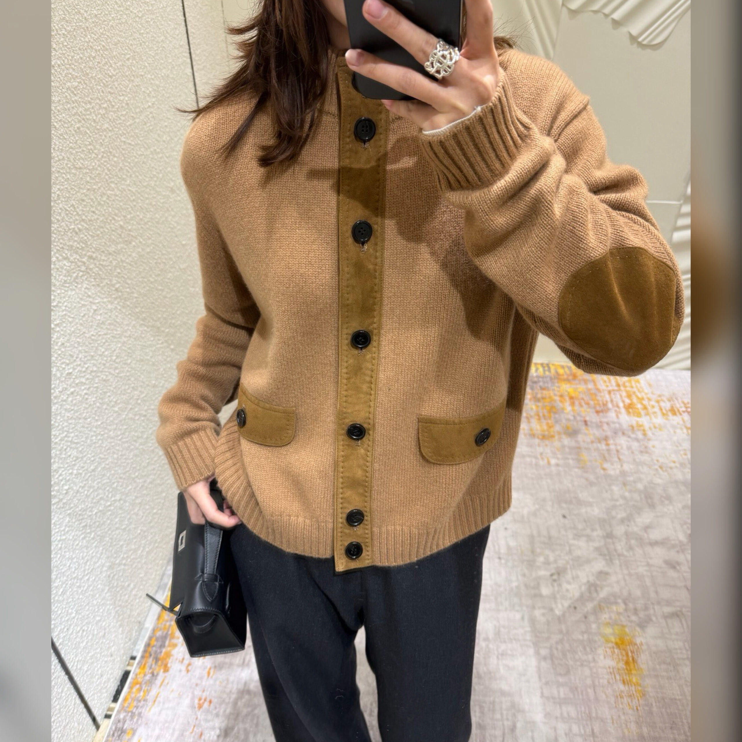 Прямой кардиган комфортной длины станет любимой вещью в повседневном гардеробе. В этом ему помогают базовый цвет, удобный силуэт и материал. Мастера марки, основанной Пьетро Лоро Пьяна, выполнили изделие из нежного кашемира. Пуговичную планку, клапаны карманов и рукава подчеркнули бархатистой замшей.