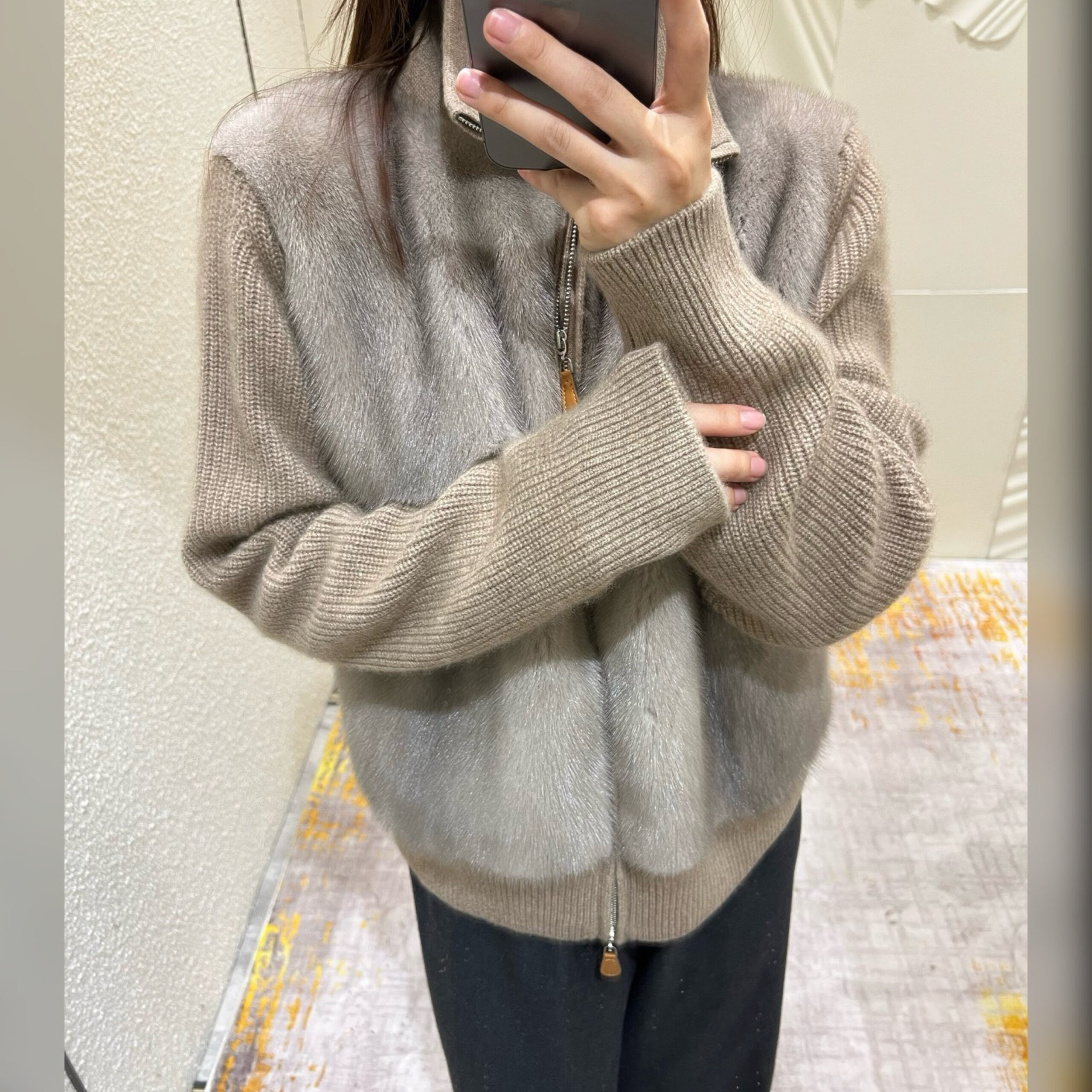 Натуральный кашемир, натуральный мех норки.