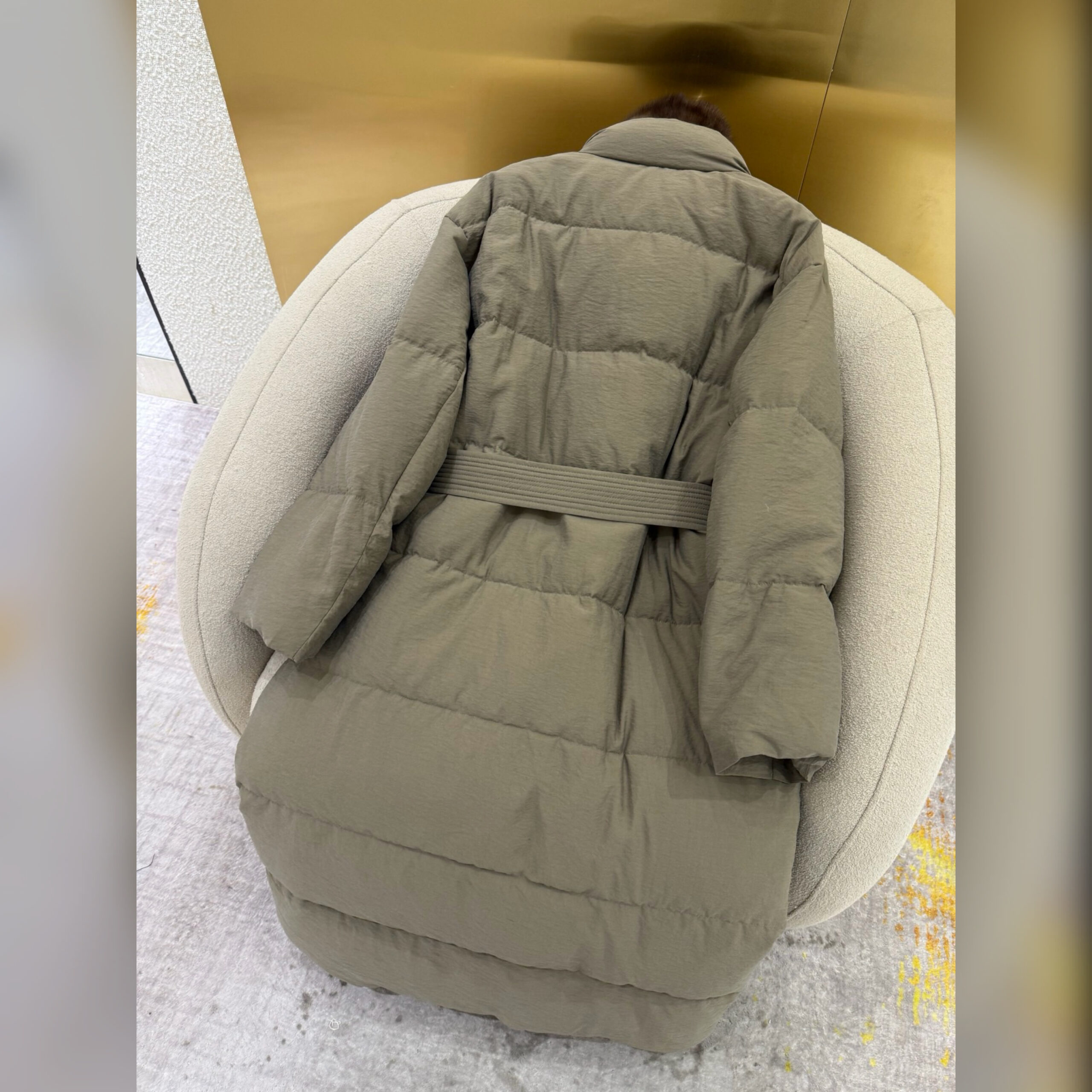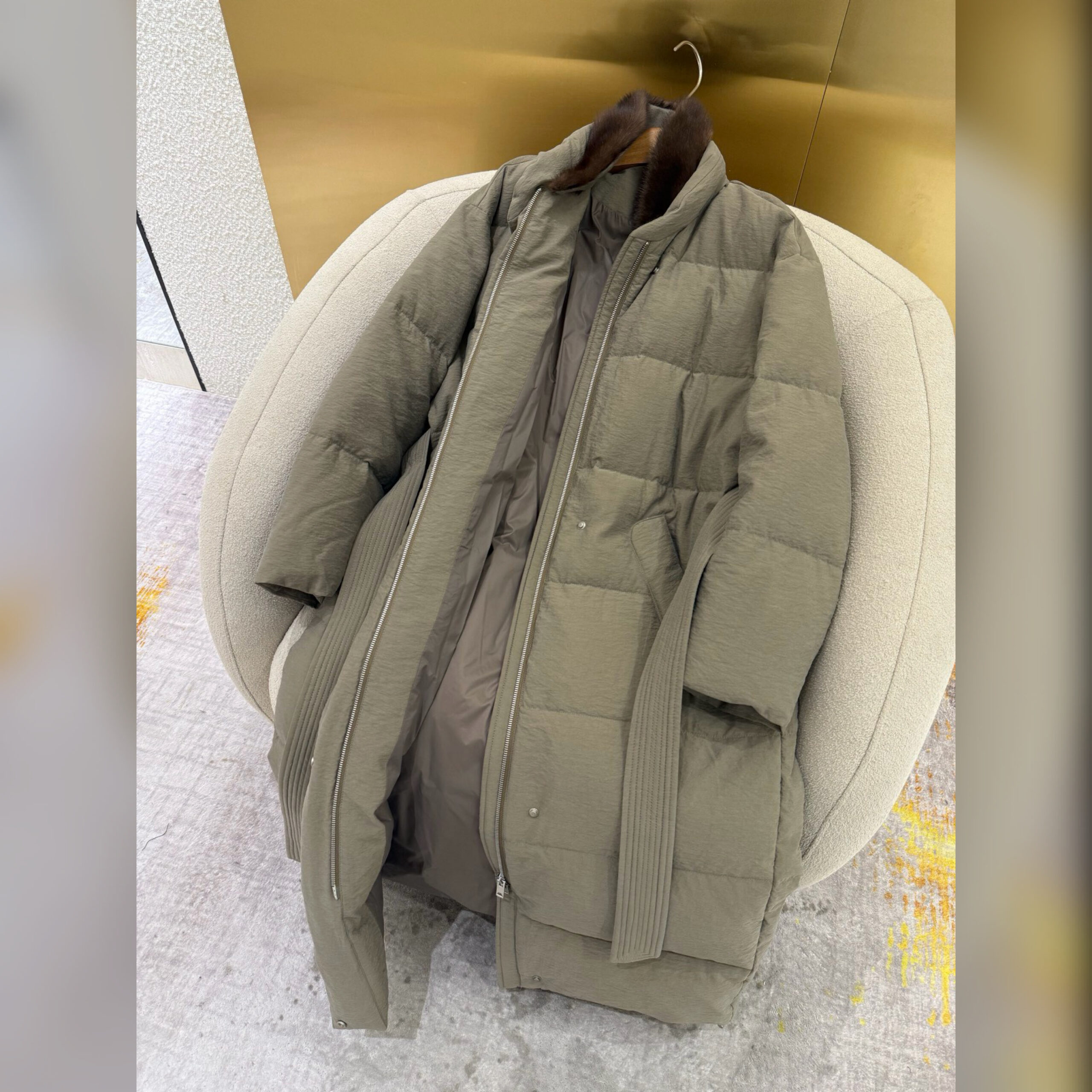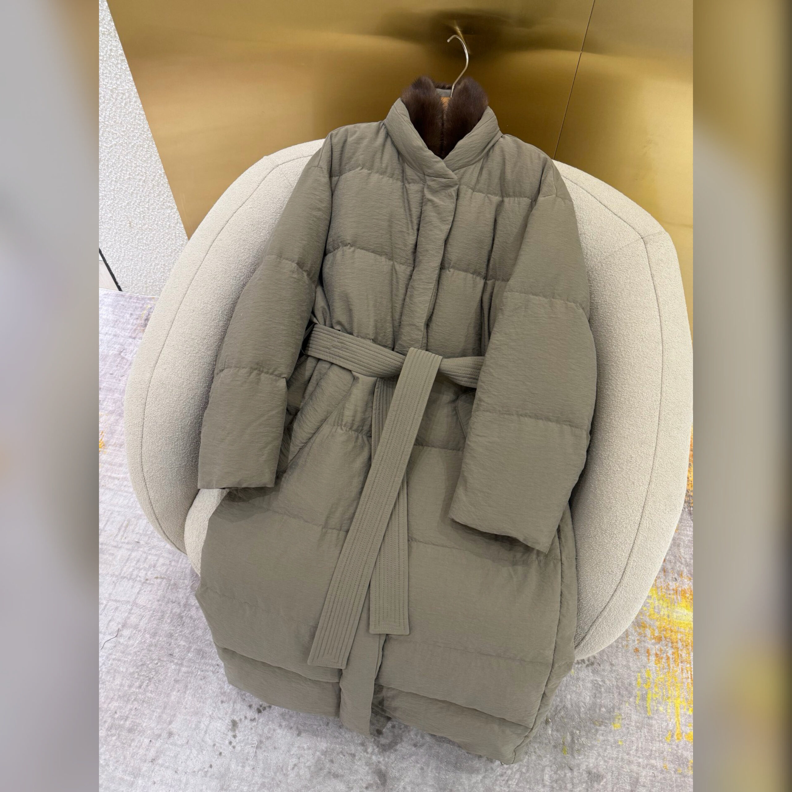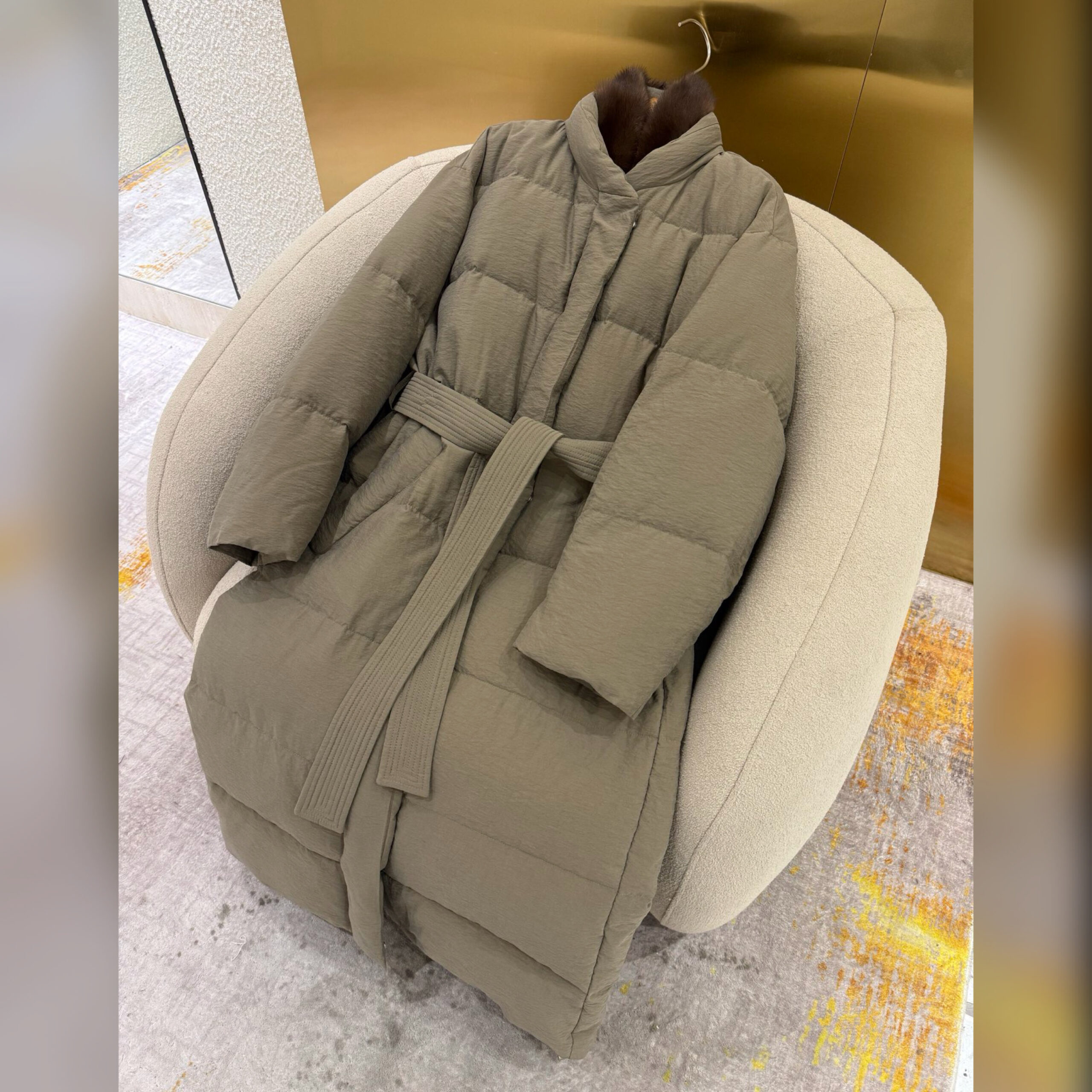 Длинный пуховик — комфортный вариант для прогулок в холодную погоду.