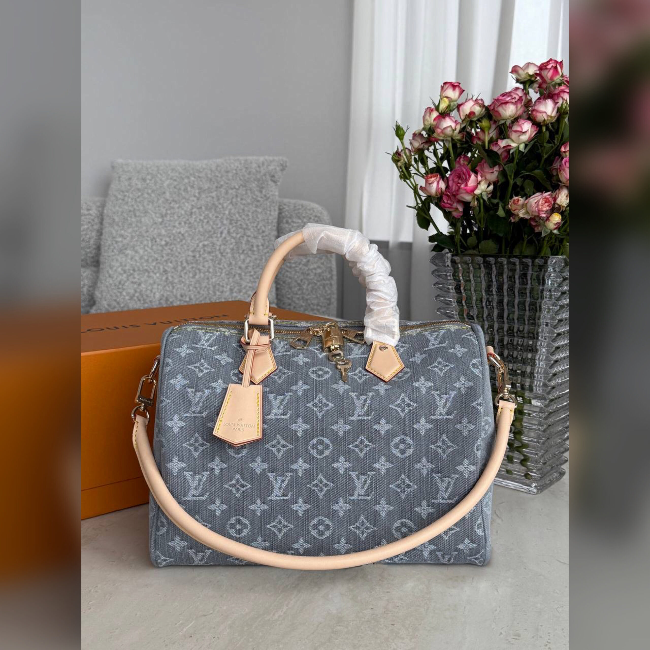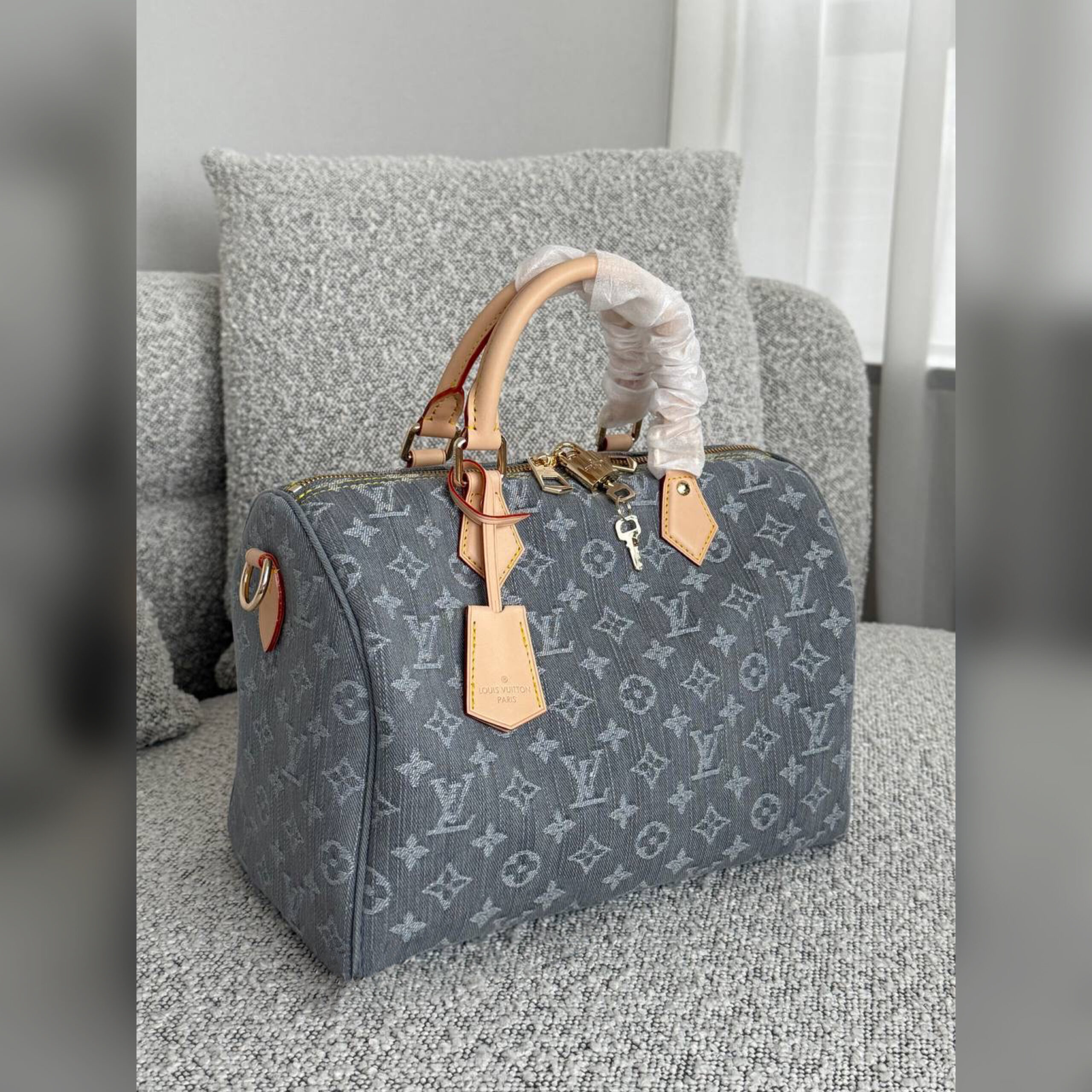 Сумка Speedy из денима с жаккардовым узором Monogram превосходно дополнит непринуждённый образ.
