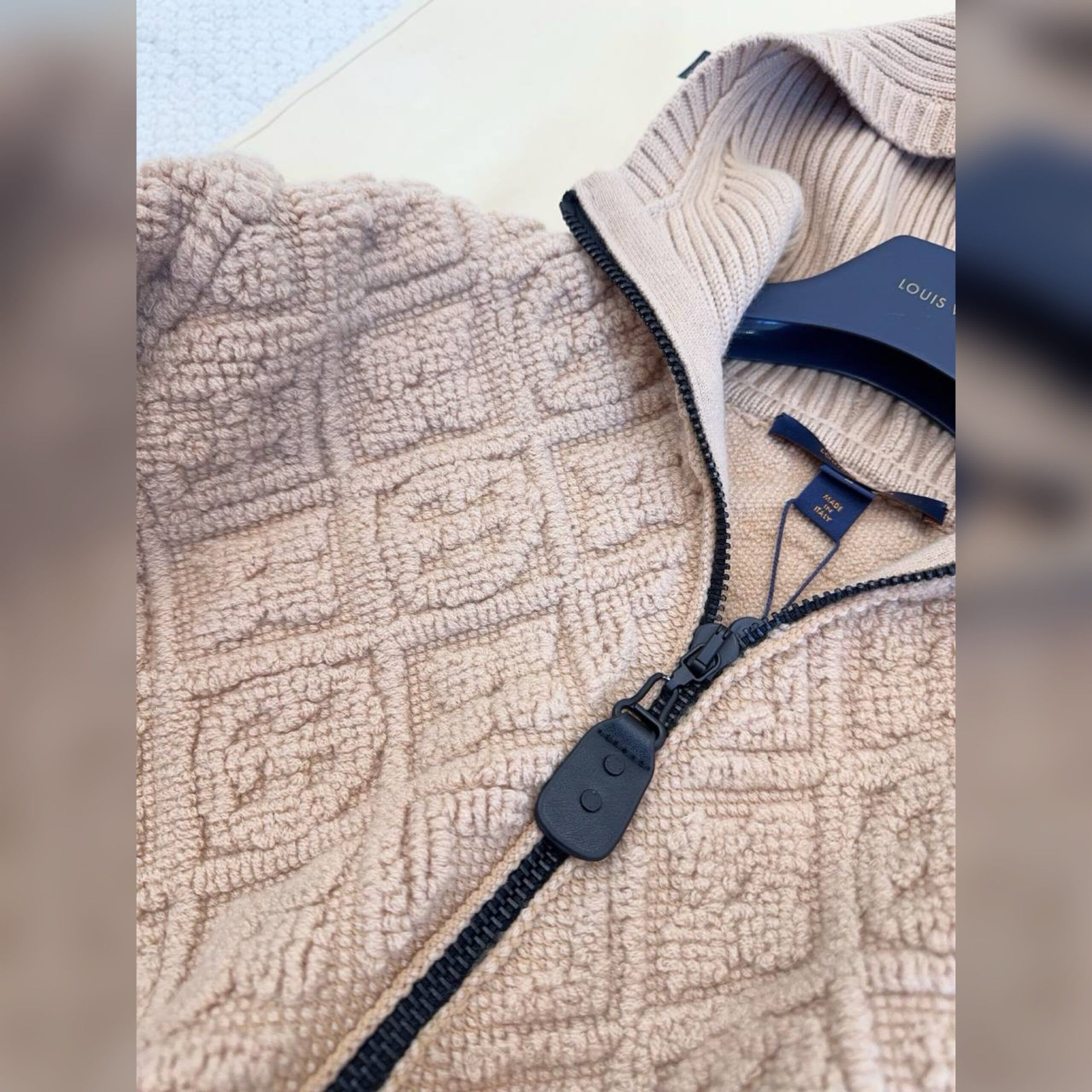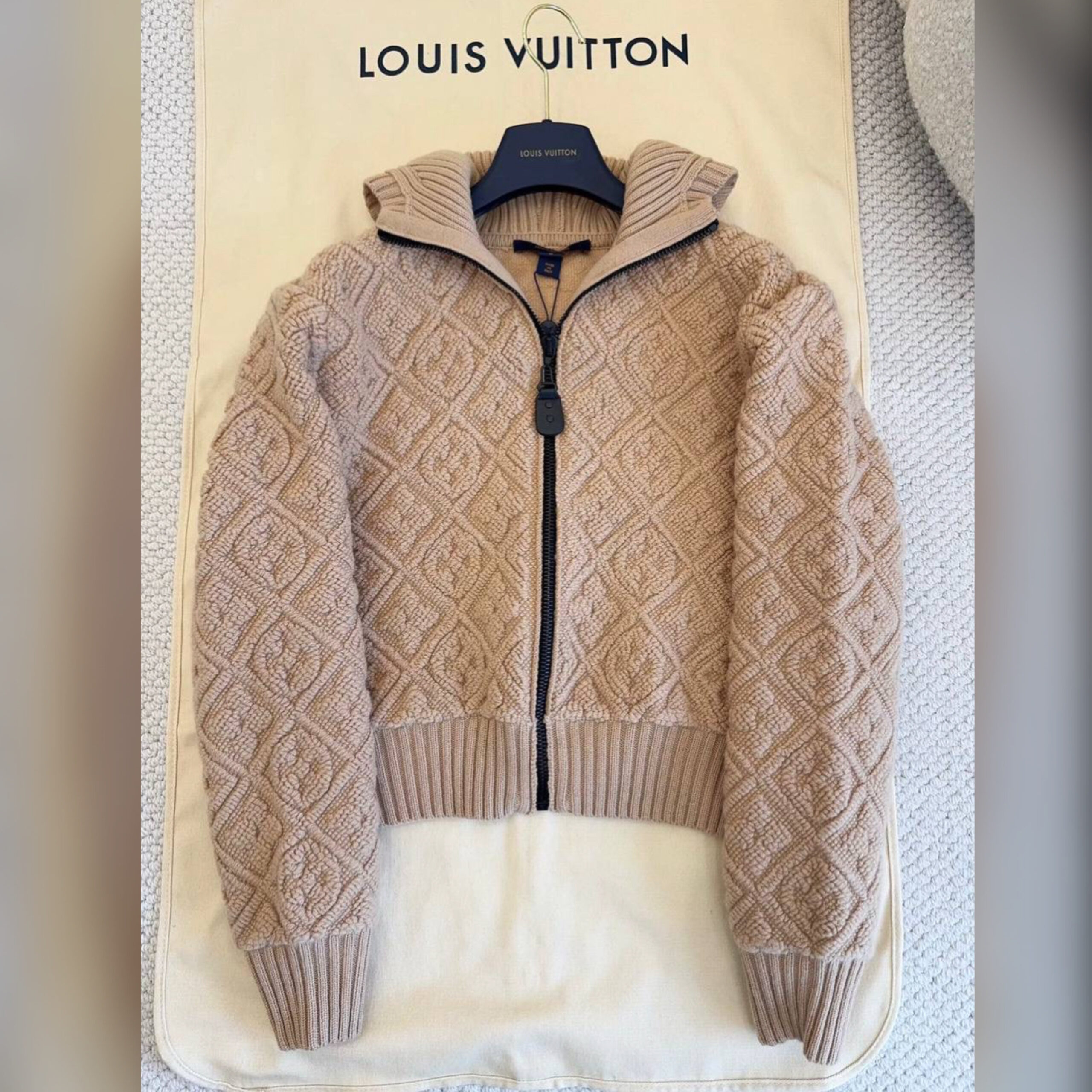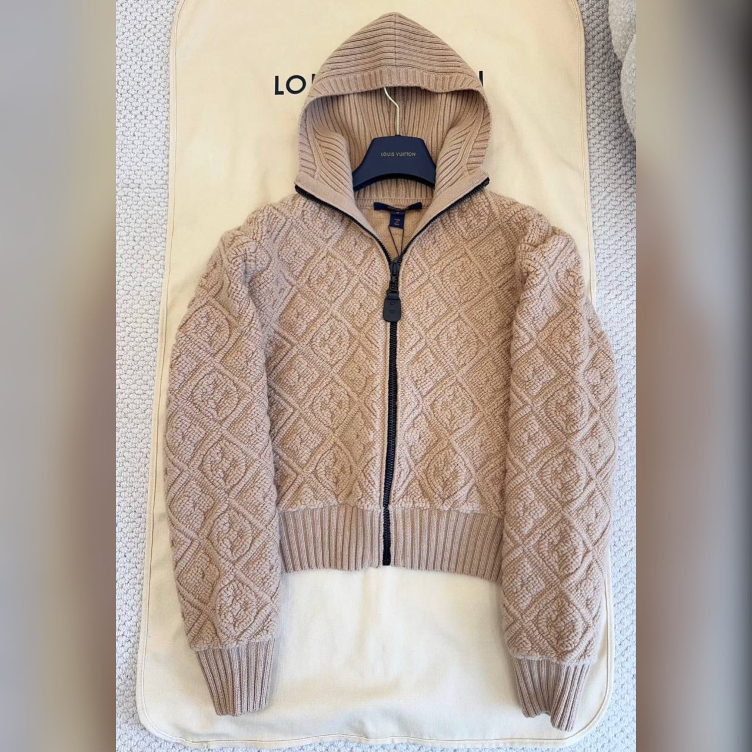 Эффектный и комфортный кардиган выполнили из мягкой махровой ткани, украшенной культовым рельефным узором Monogram. Высокий воротник, переходящий в капюшон, манжеты и пояс подчеркнуты ребристой отделкой, создающей приталенный силуэт. Кожаный пуллер завершает дизайн элегантной нотой.