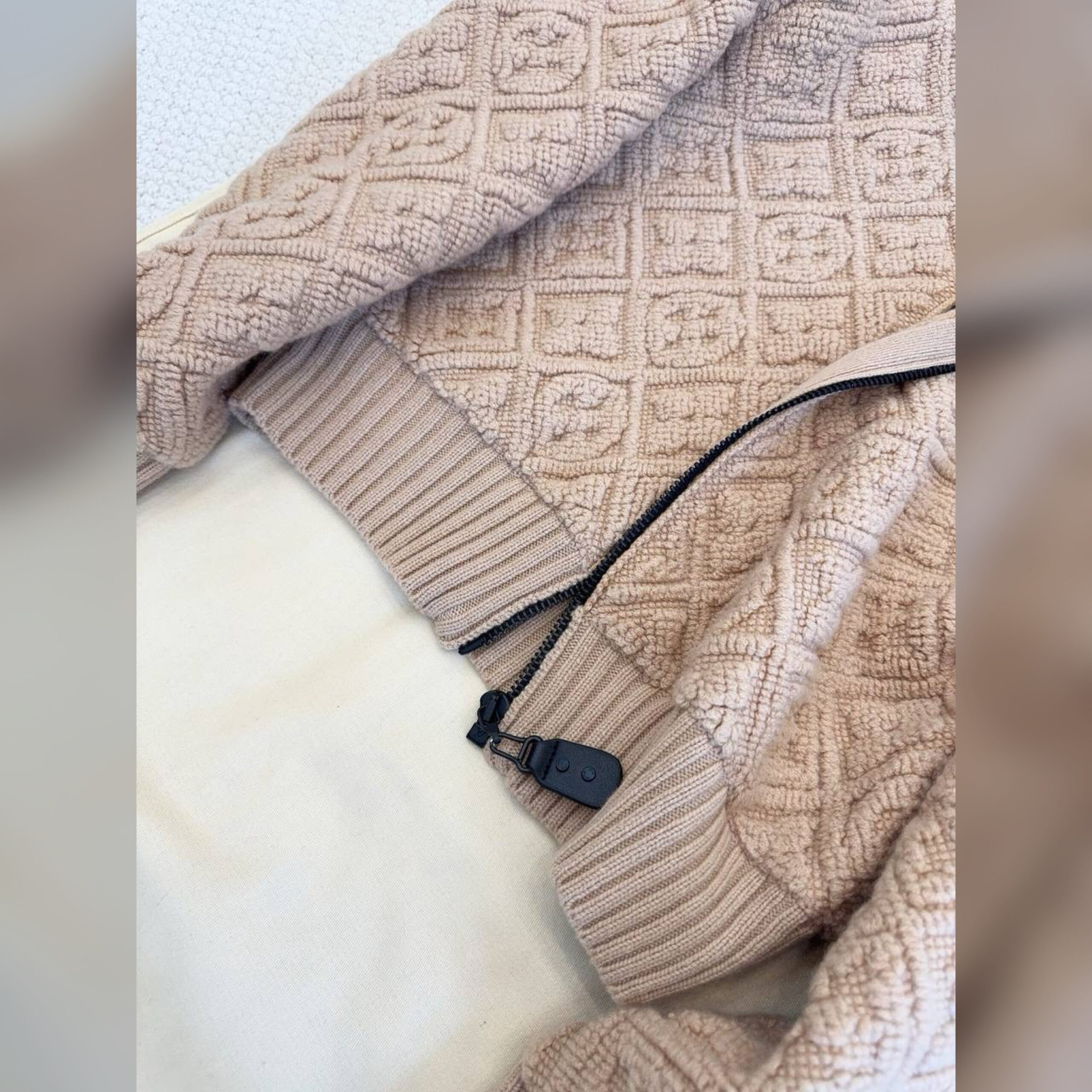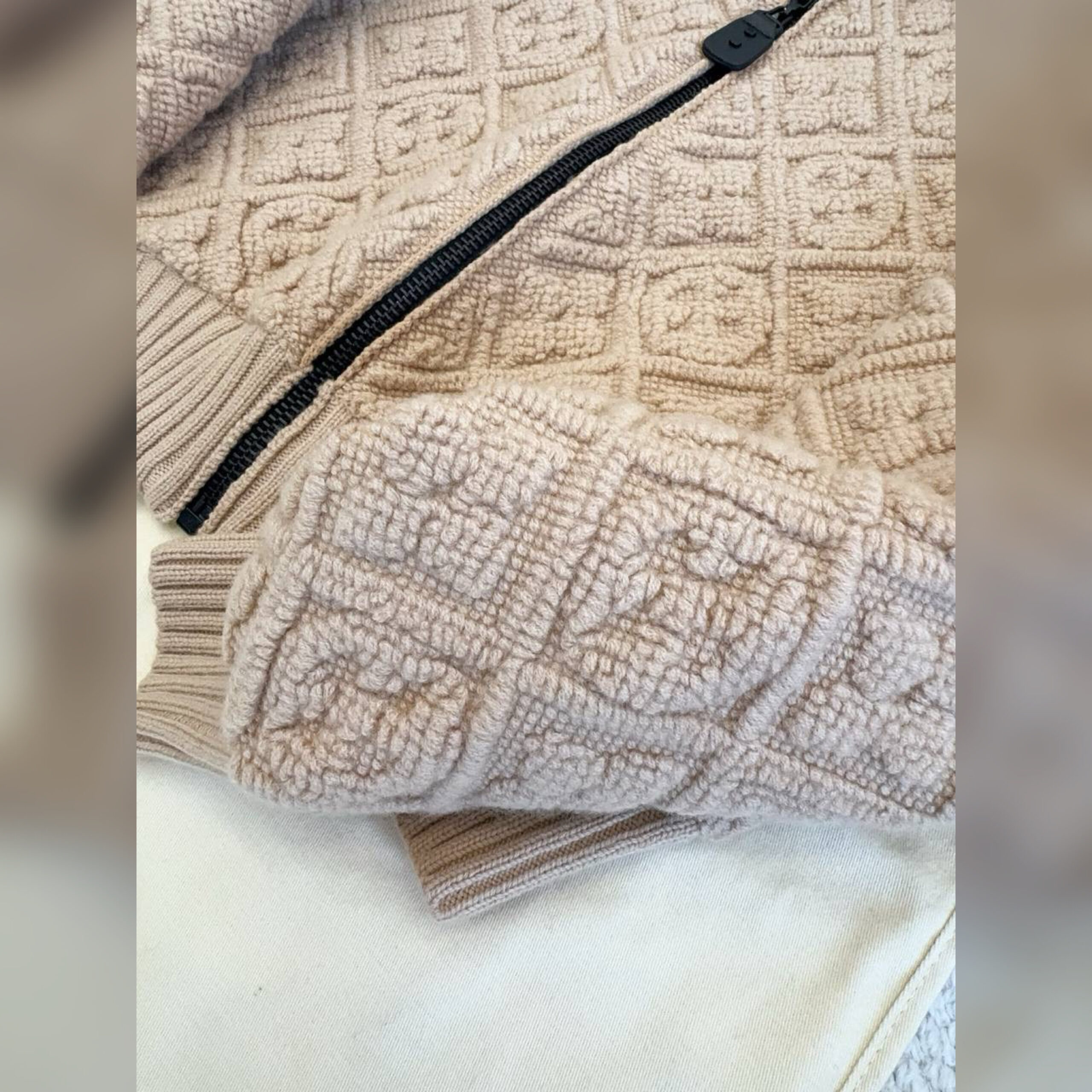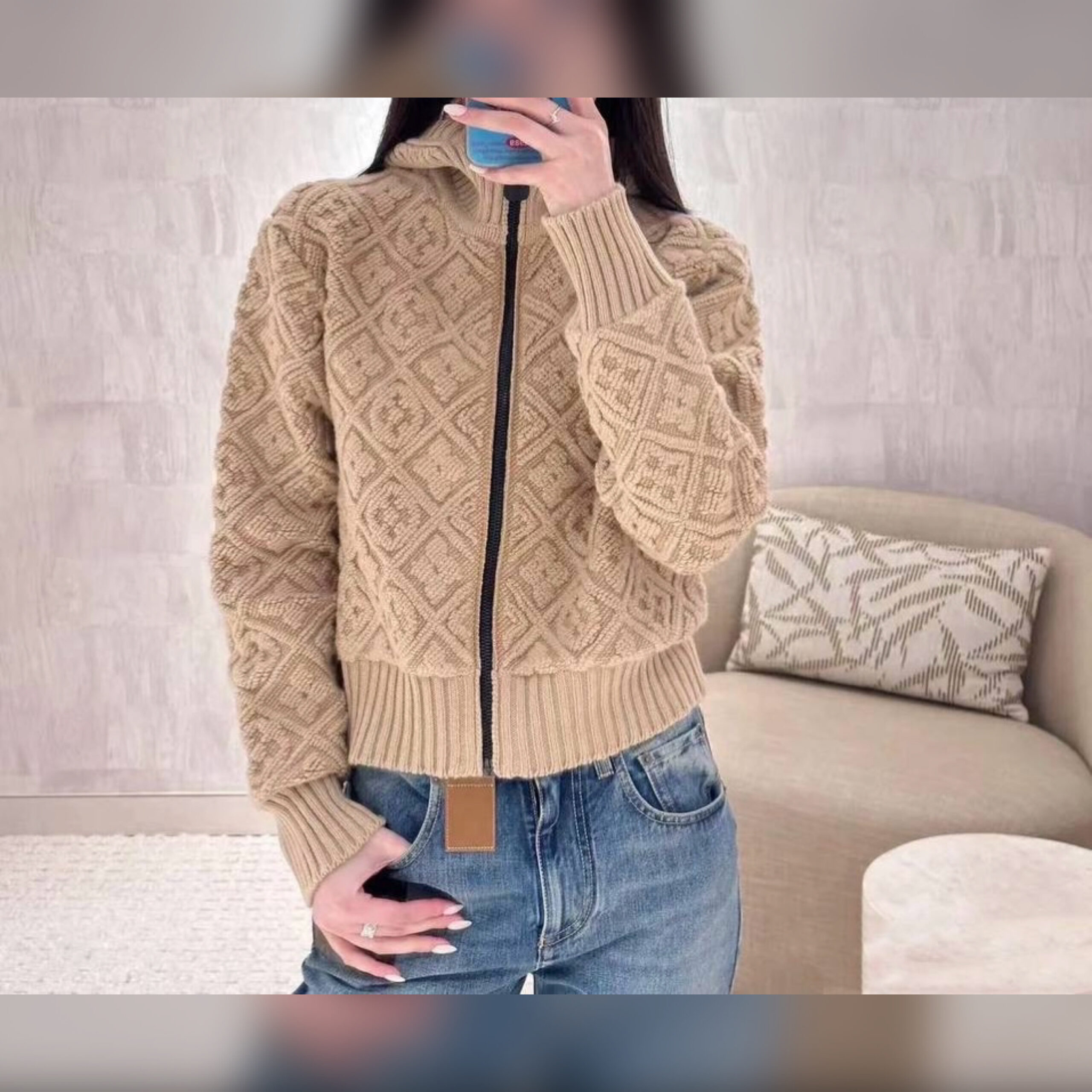 Эффектный и комфортный кардиган выполнили из мягкой махровой ткани, украшенной культовым рельефным узором Monogram. Высокий воротник, переходящий в капюшон, манжеты и пояс подчеркнуты ребристой отделкой, создающей приталенный силуэт. Кожаный пуллер завершает дизайн элегантной нотой.