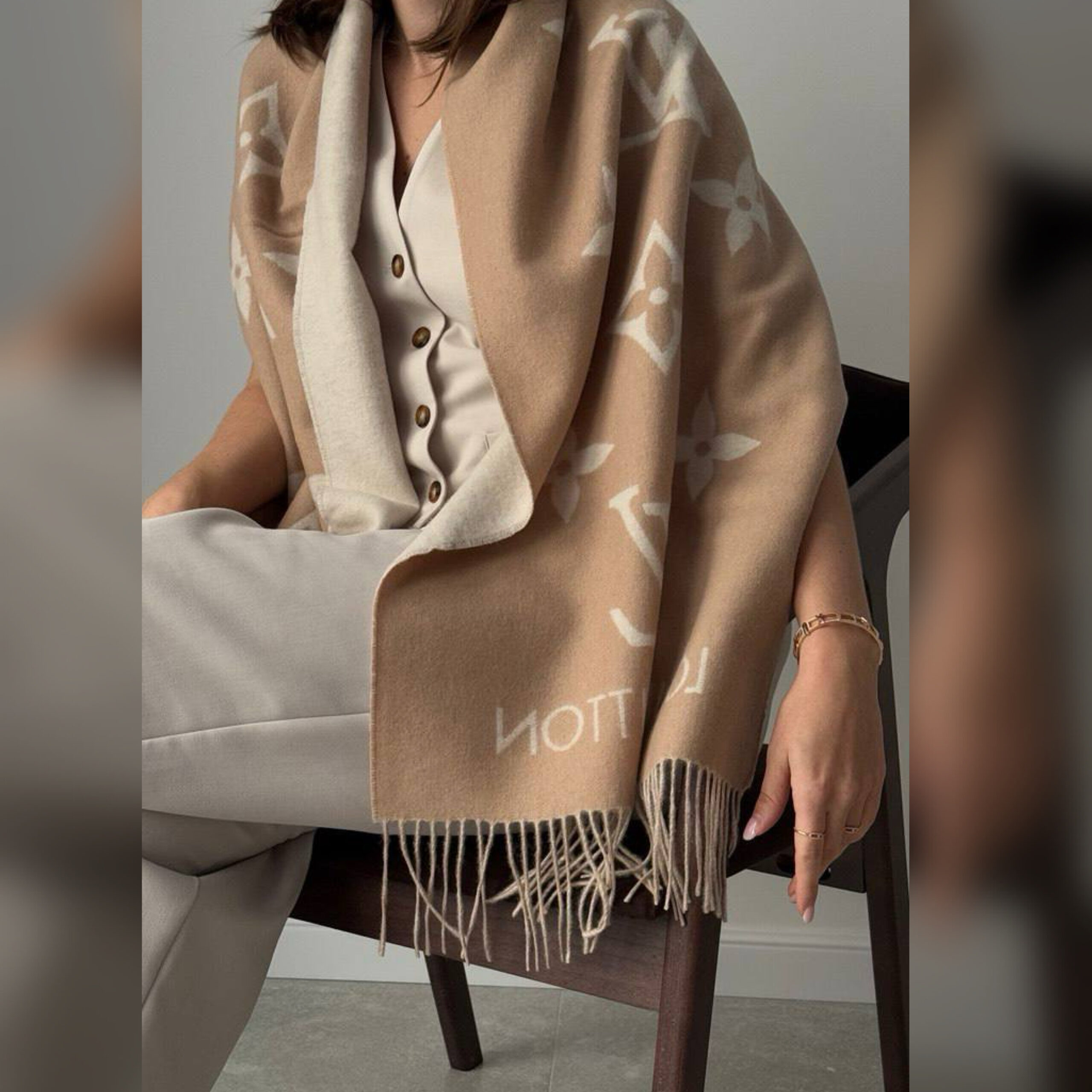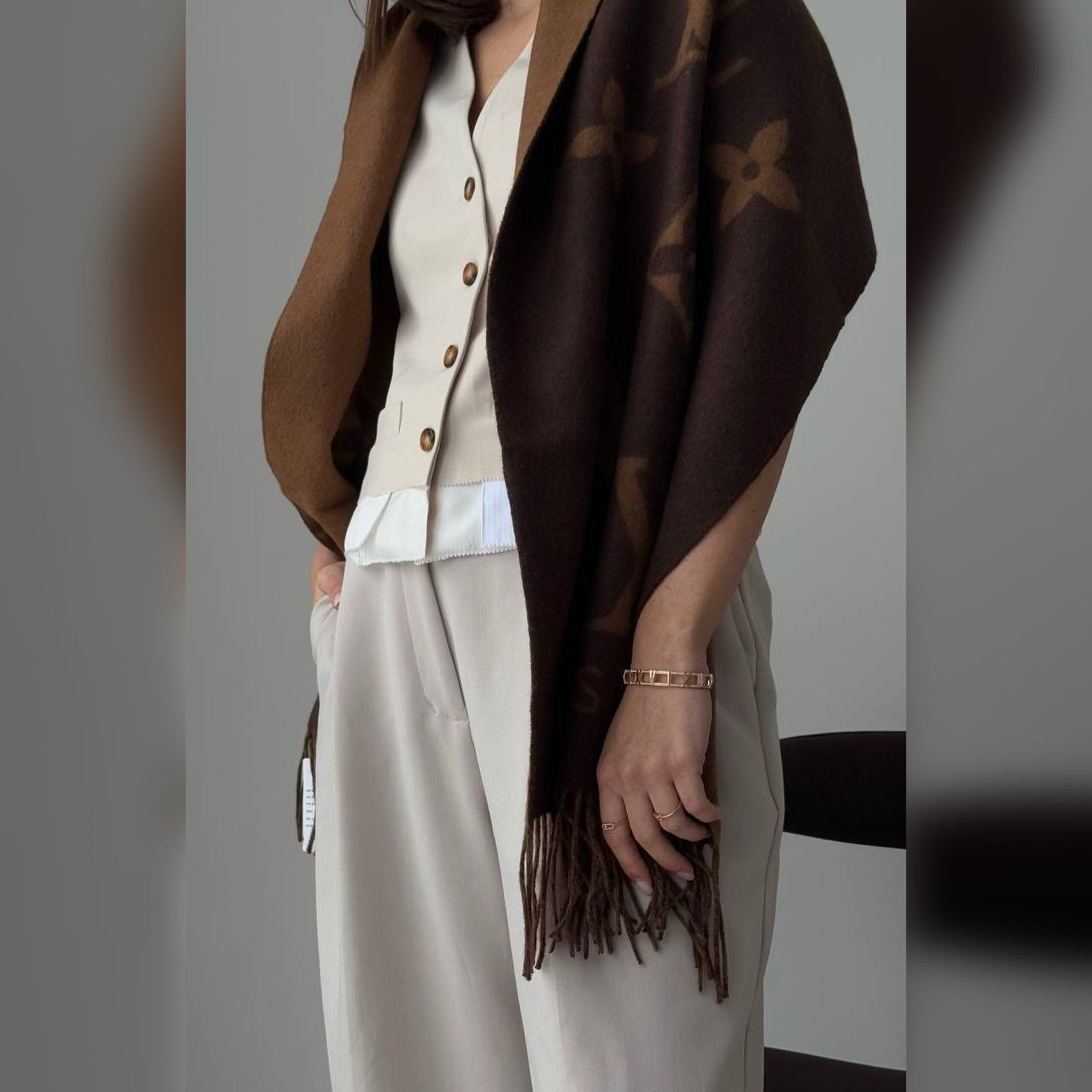 Роскошный широкий шарф из мягкого кашемира идеален для создания стильного образа в прохладный день.