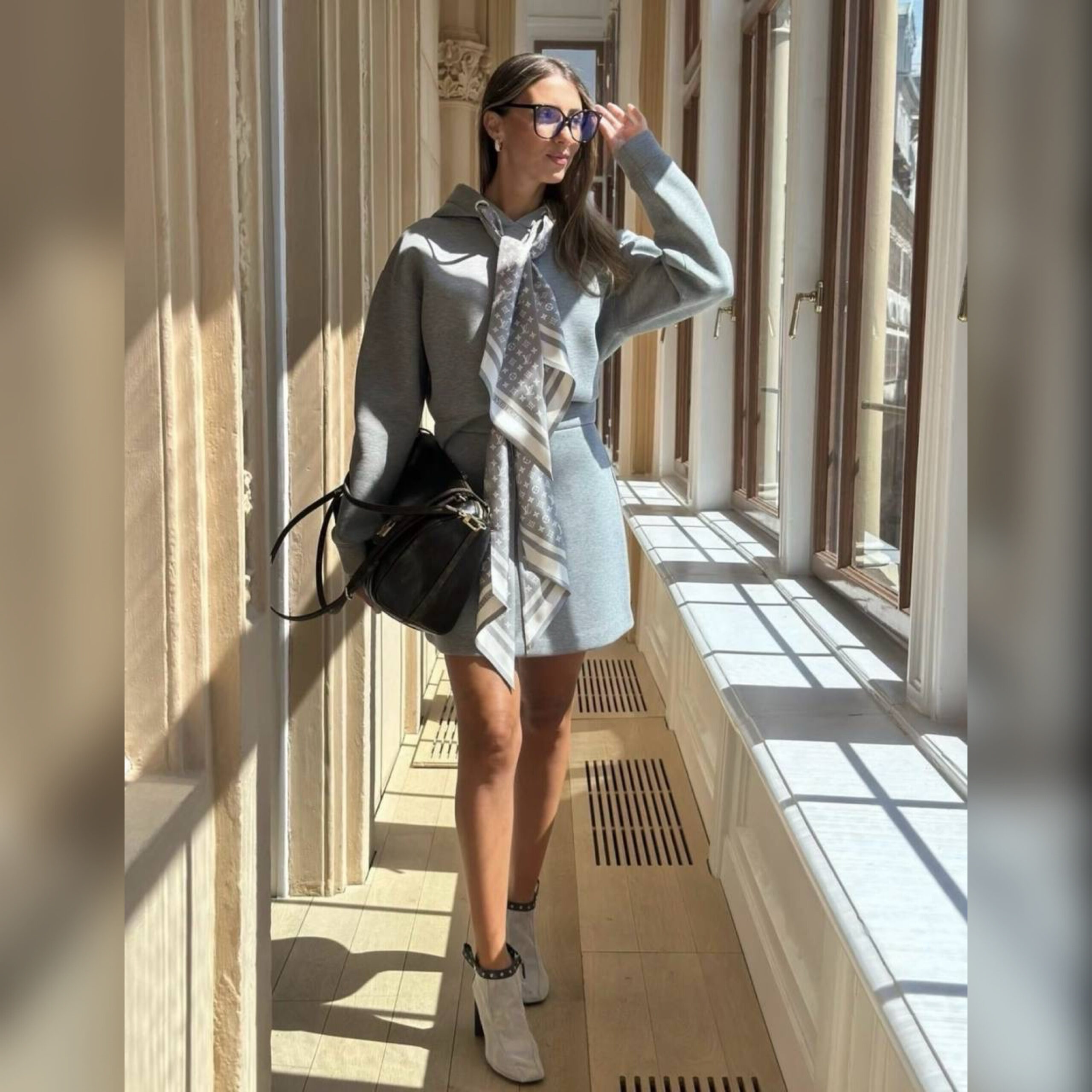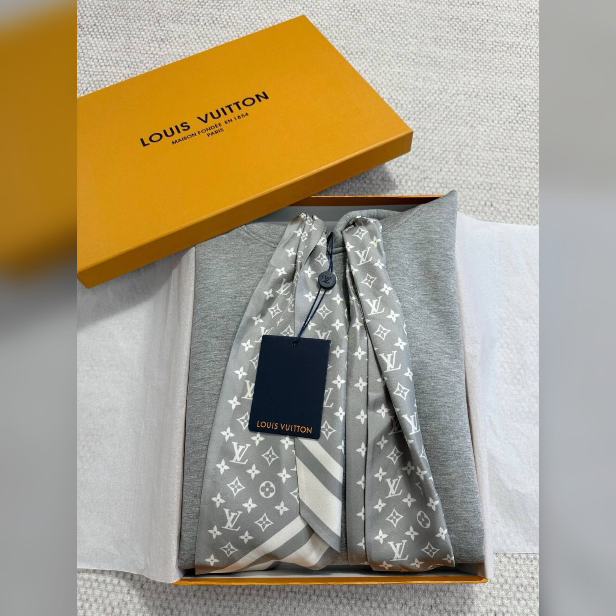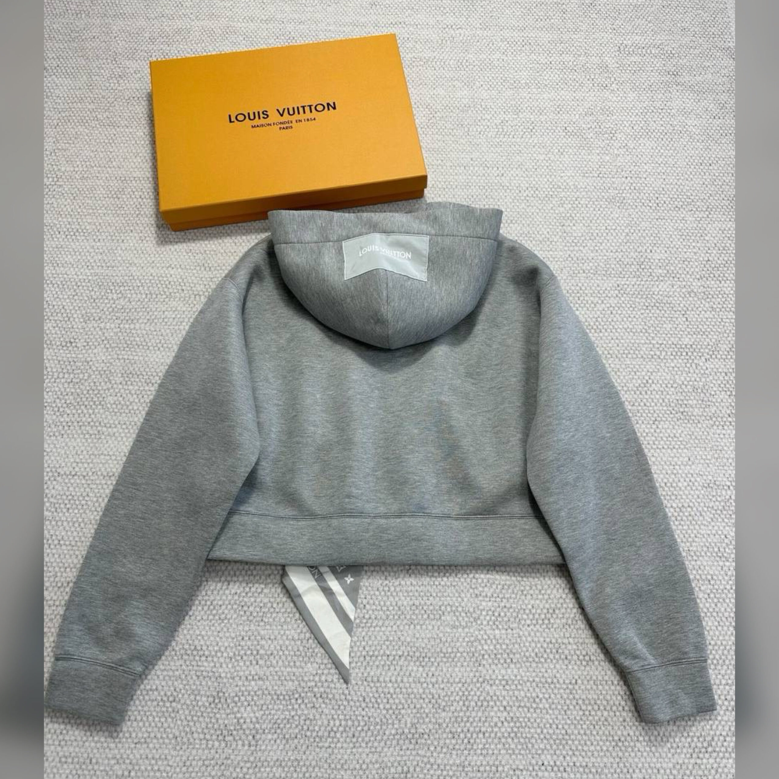 Объемный капюшон украшен биркой Louis Vuitton, а в его люверсы продет шелковый шарф Monogram, создающий эффектный контраст.