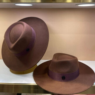 Шляпа изготовлена из мягкого плотного фетра. Тулья украшена широкой двухцветной гросгрейновой лентой и миниатюрным логотипом бренда из металла.