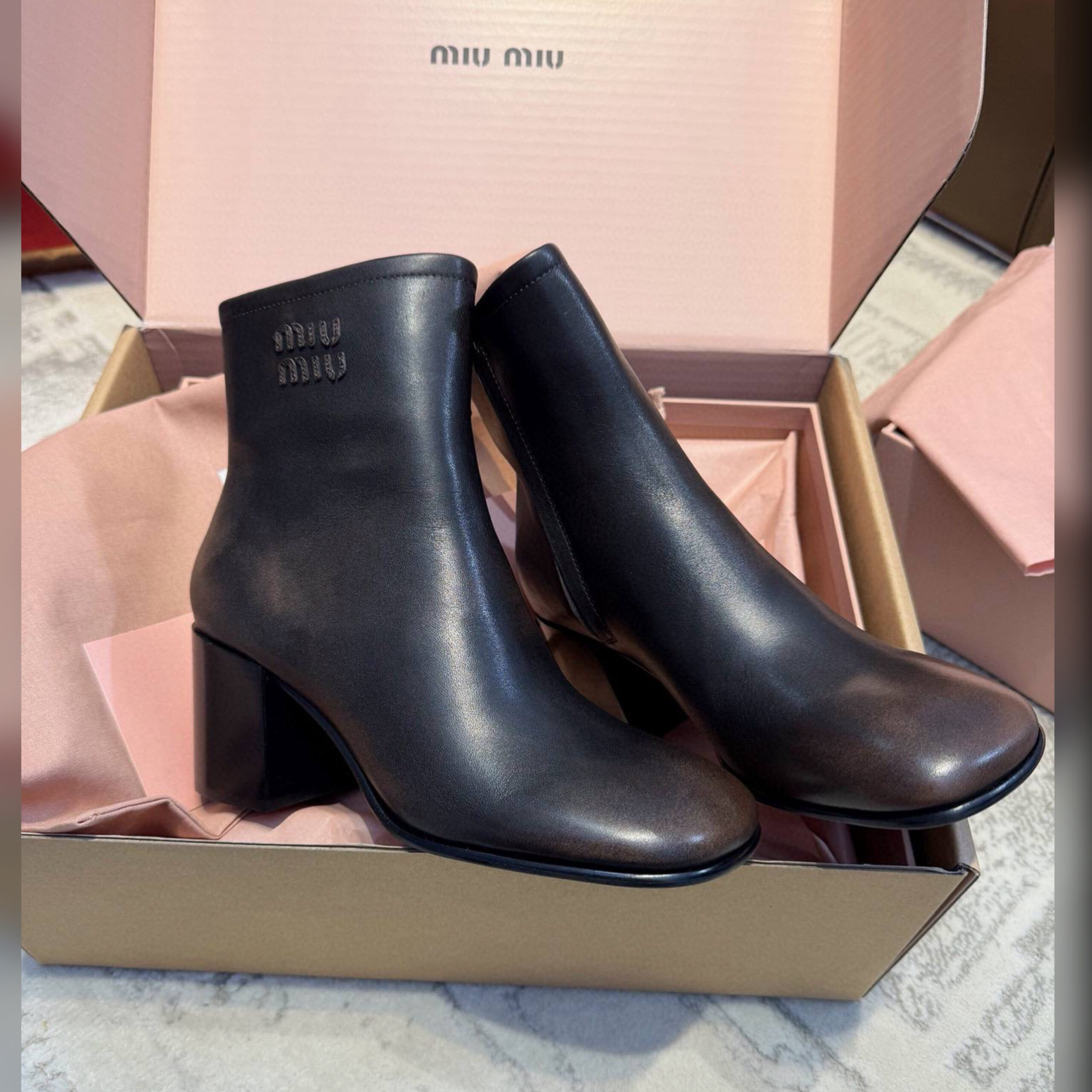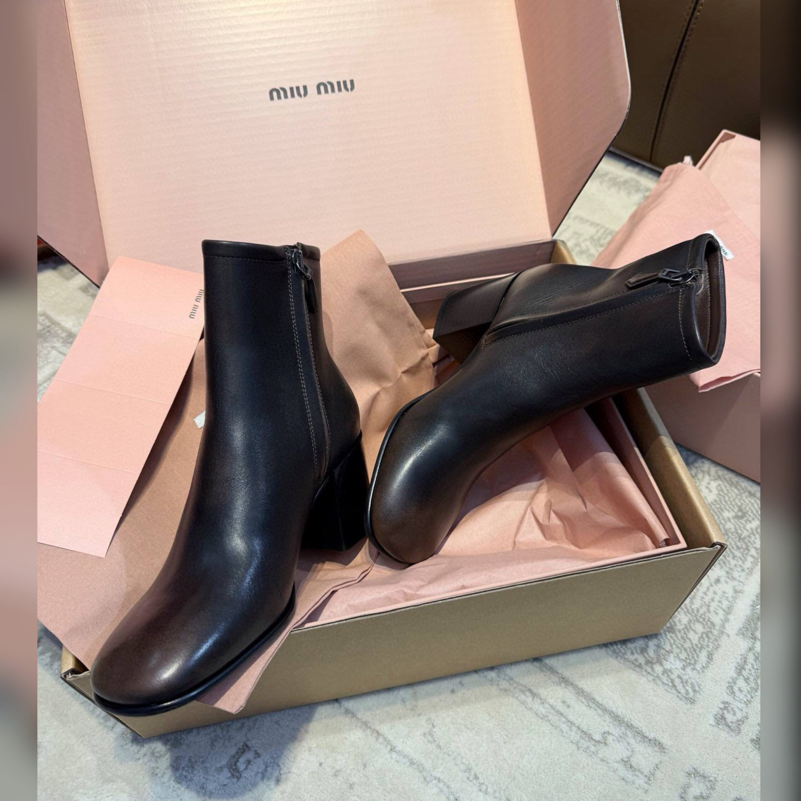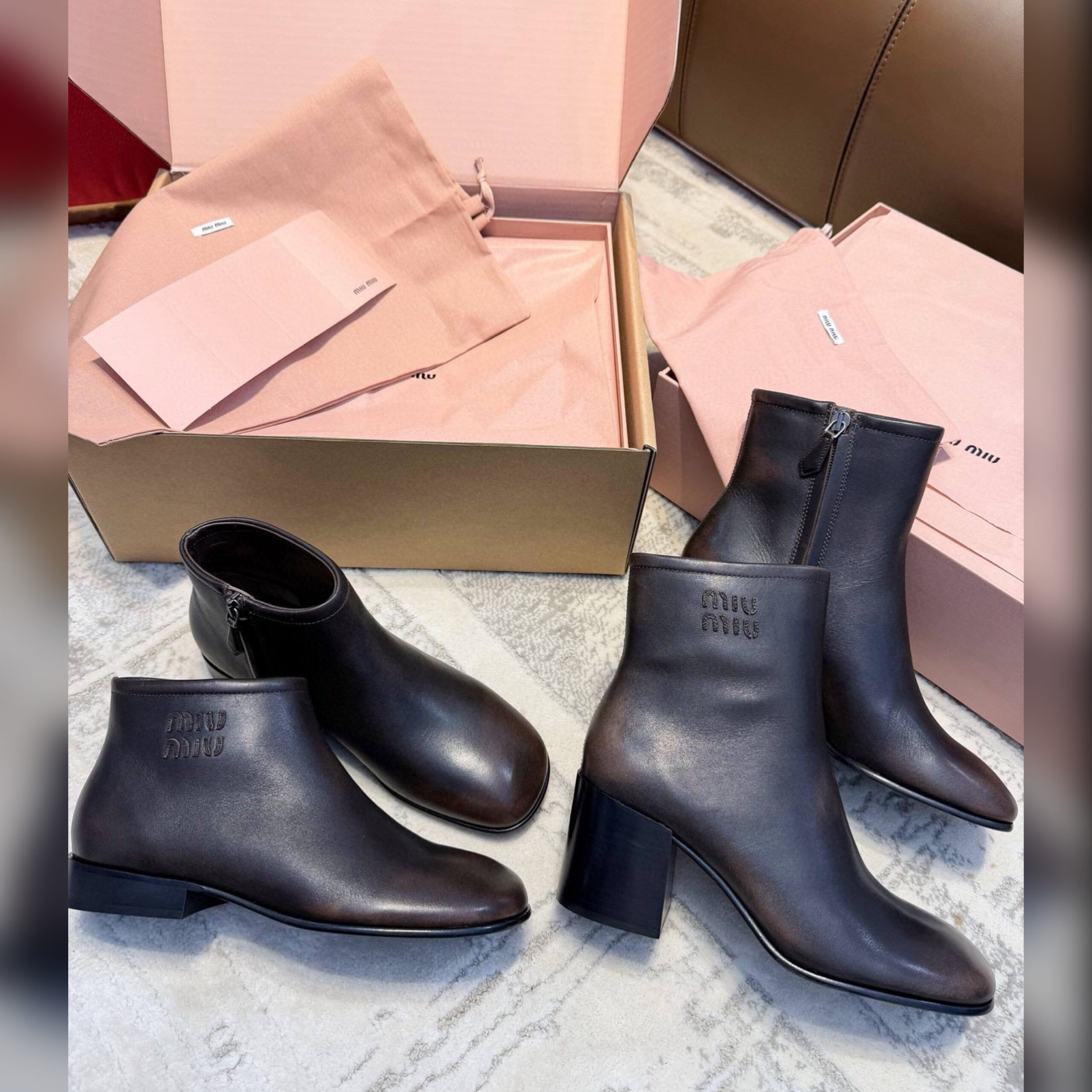 Несмотря на сдержанный дизайн, ботильоны выглядят эффектно , благодаря мягкой телячьей коже с винтажным эффектом. Пары сделали предельно лаконичными, украсив их лишь миниатюрным логотипом марки.