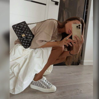 Миучча Прада сделала серый свитшот максимально комфортным.