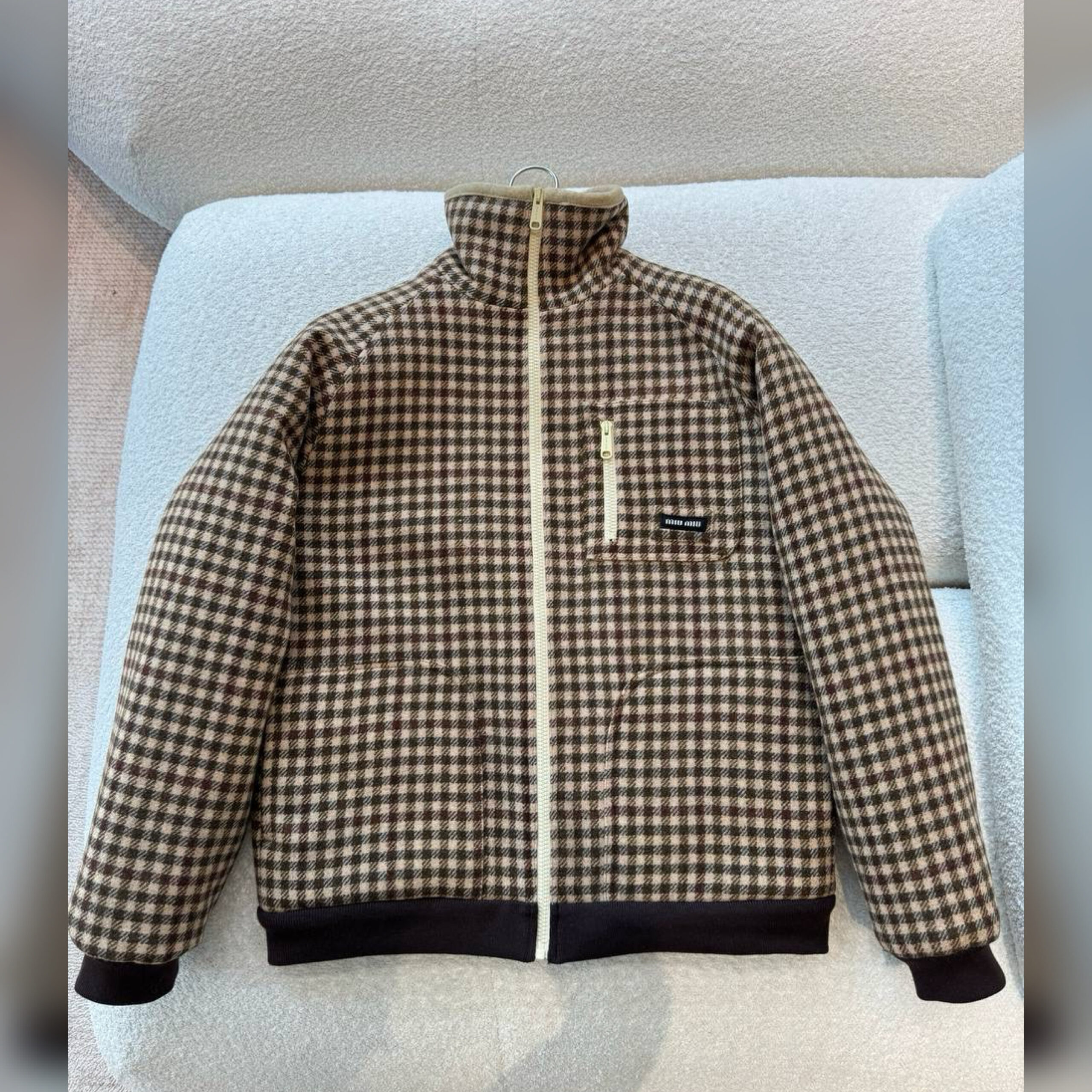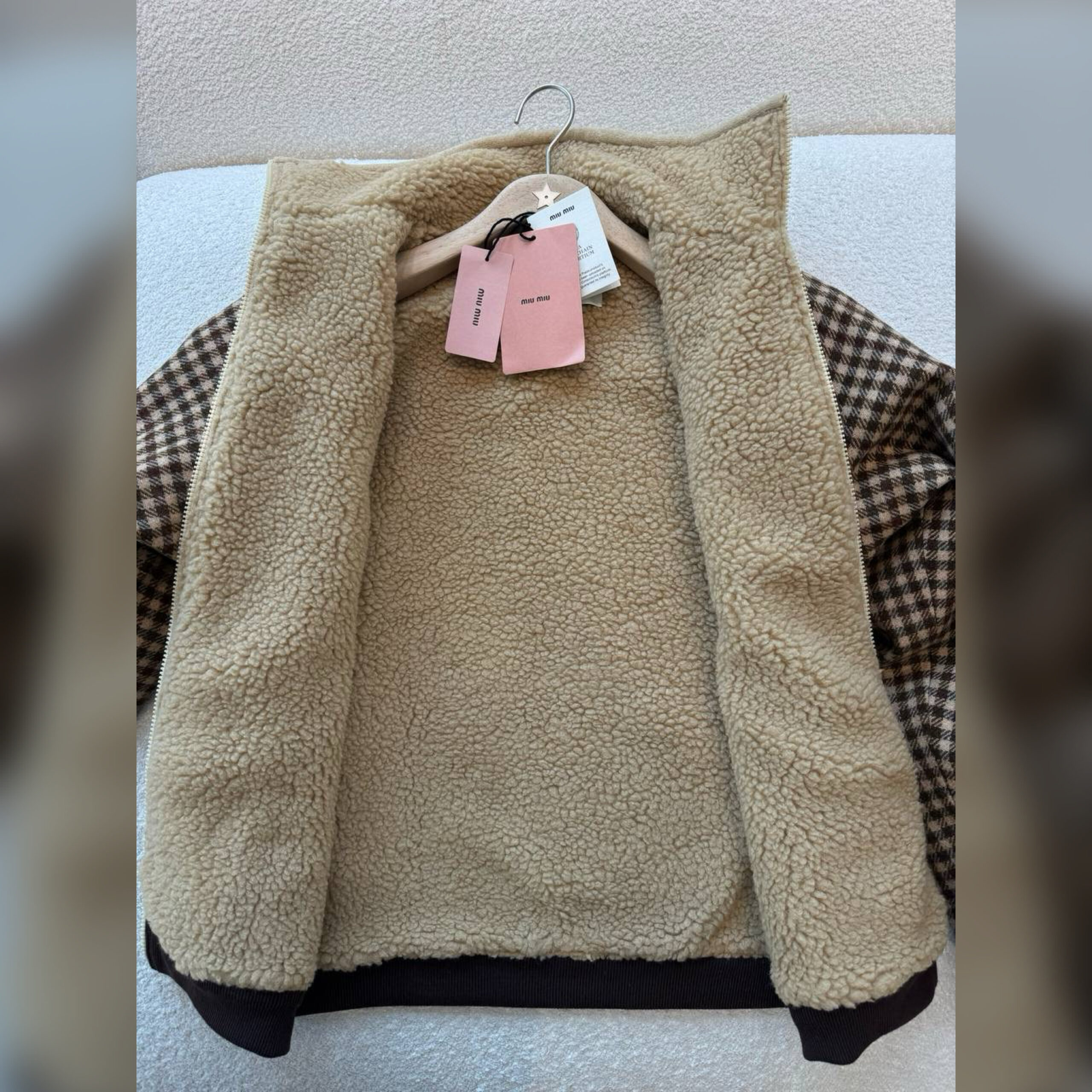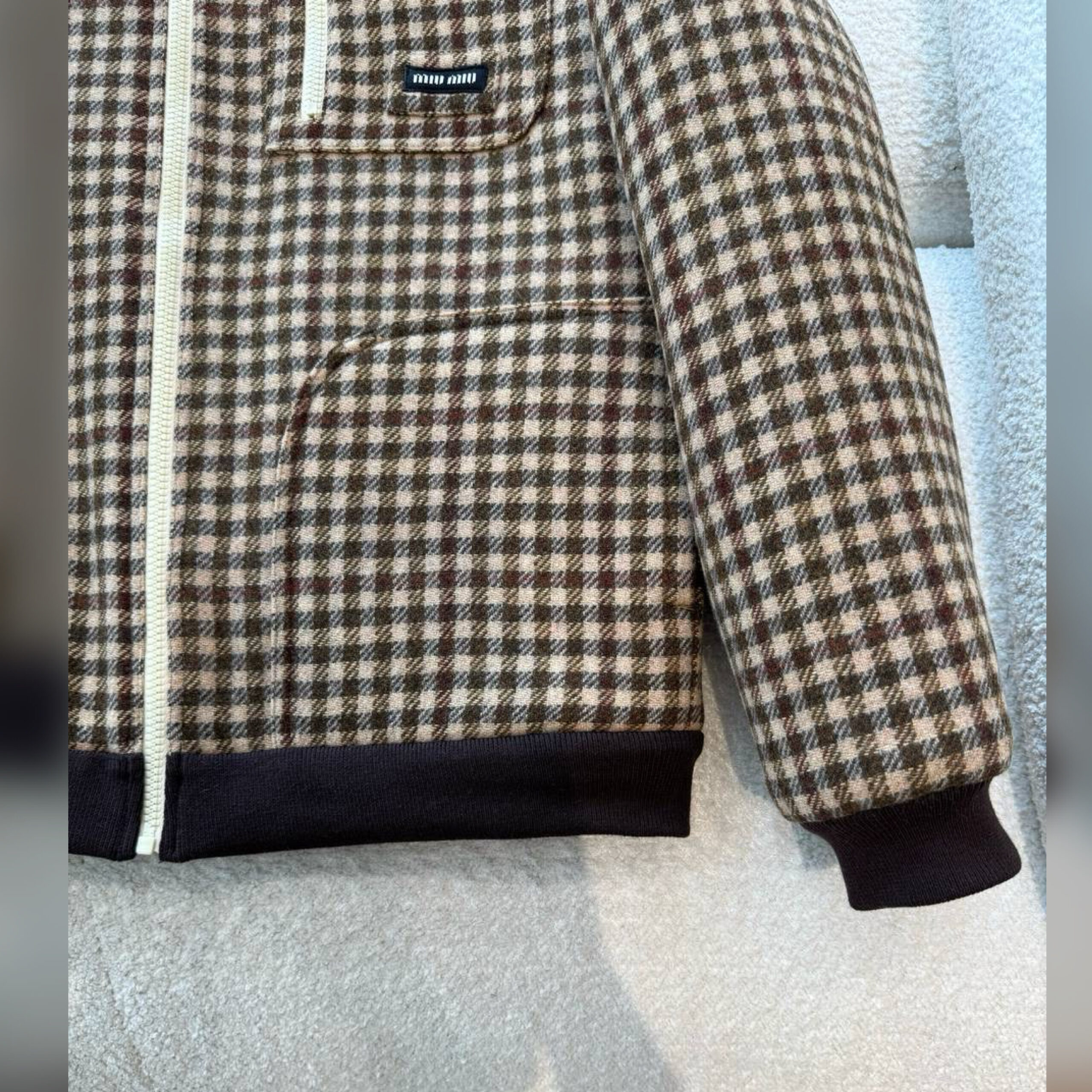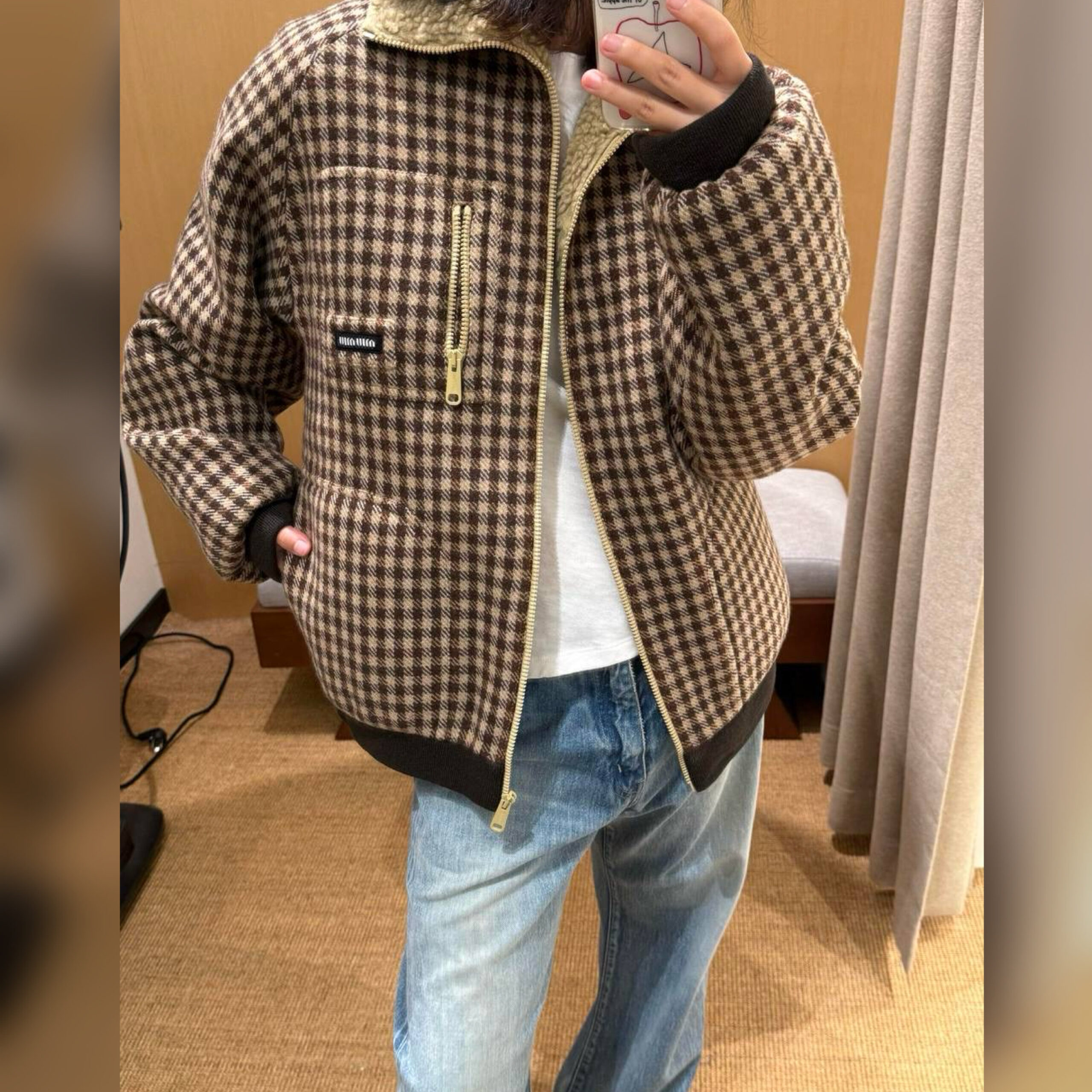 Вдохновленная винтажными моделями 1970-х годов, эта куртка отражает эклектичный дух коллекции Miu Miu, сочетая яркий клетчатый узор на шерстяной ткани с мягкой текстурой флисовой подкладки.