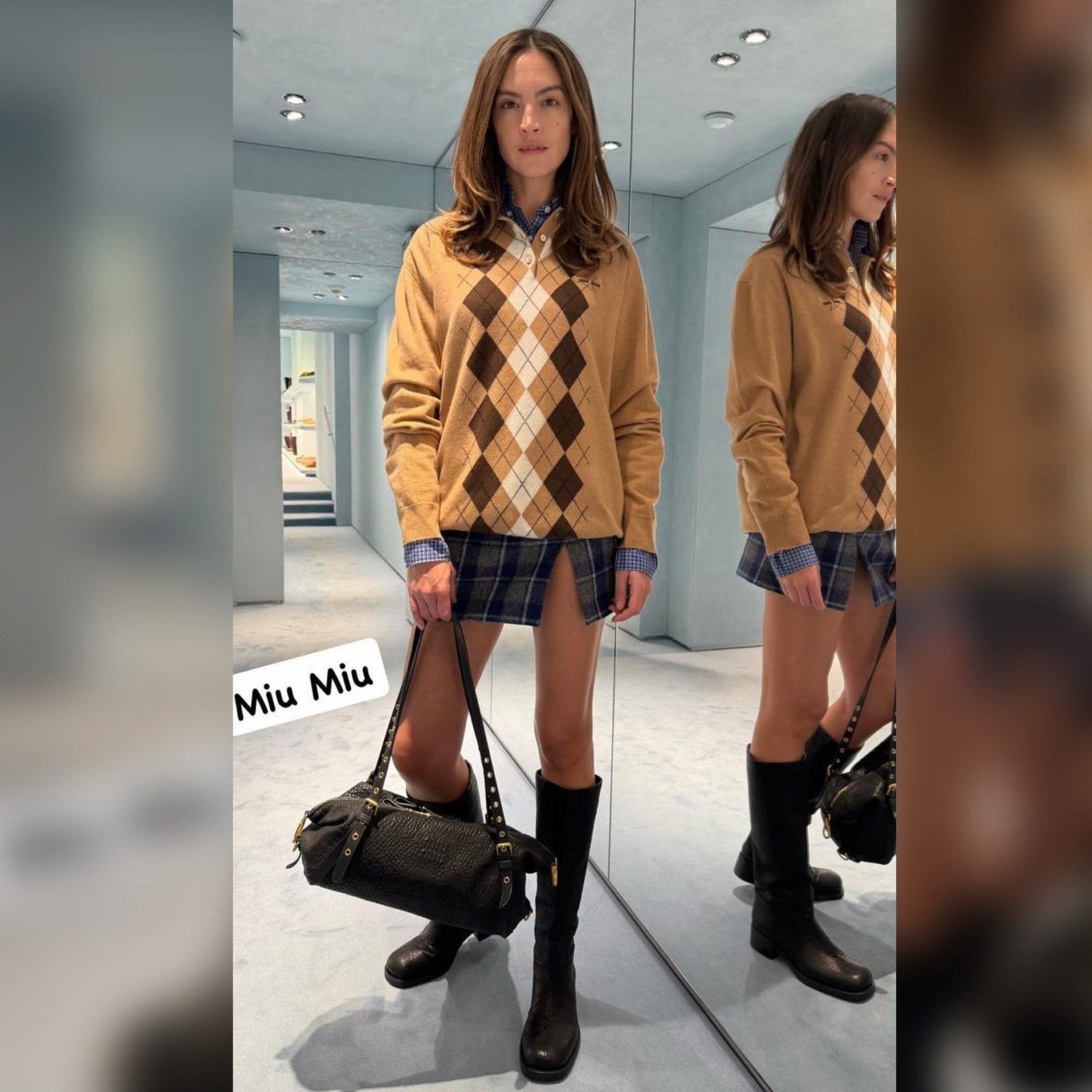 Характерный узор аргайл добавил вещи классические черты, а расслабленный силуэт адаптировал модель к современным повседневным образам. Спереди – миниатюрный логотип марки, выполненный в технике интарсия.