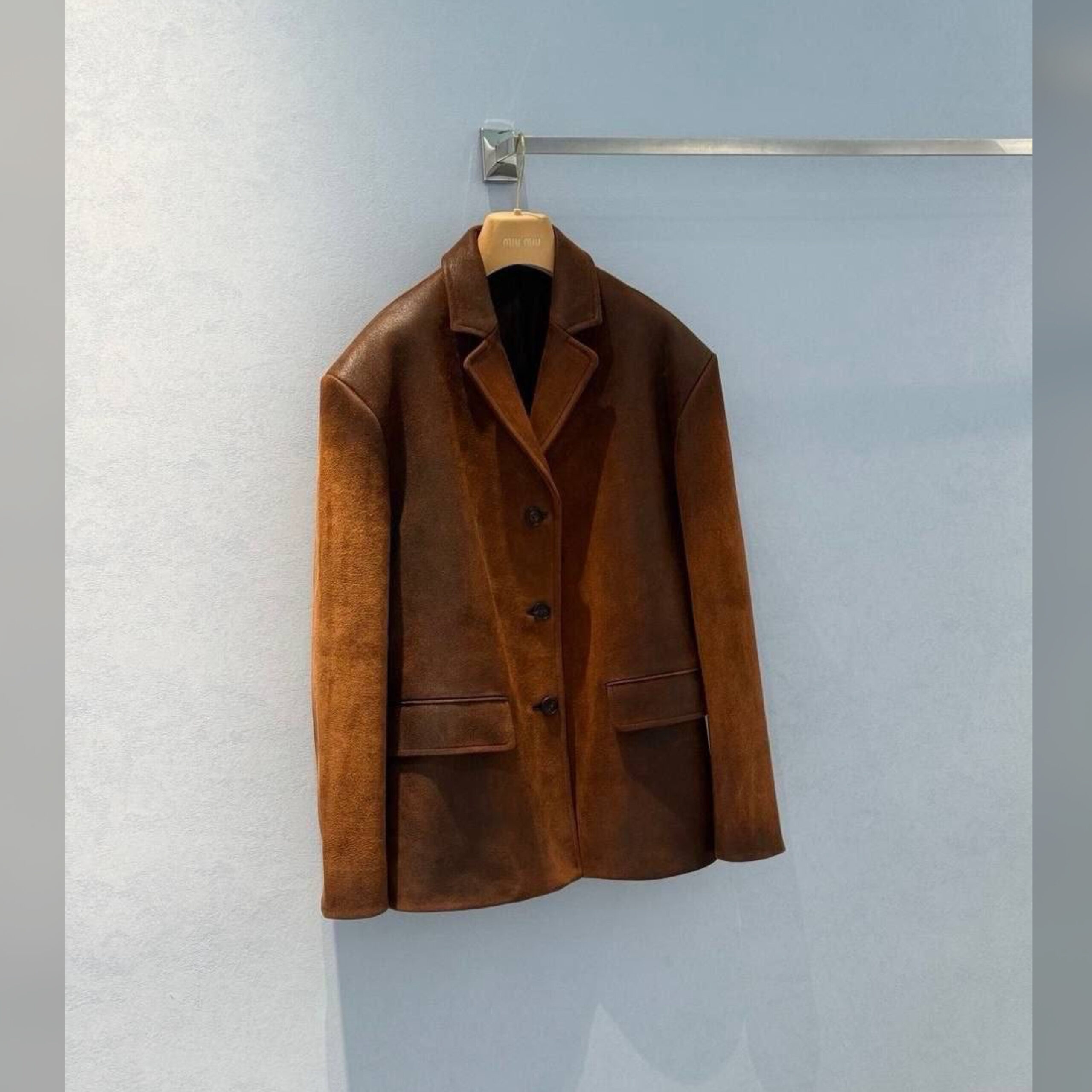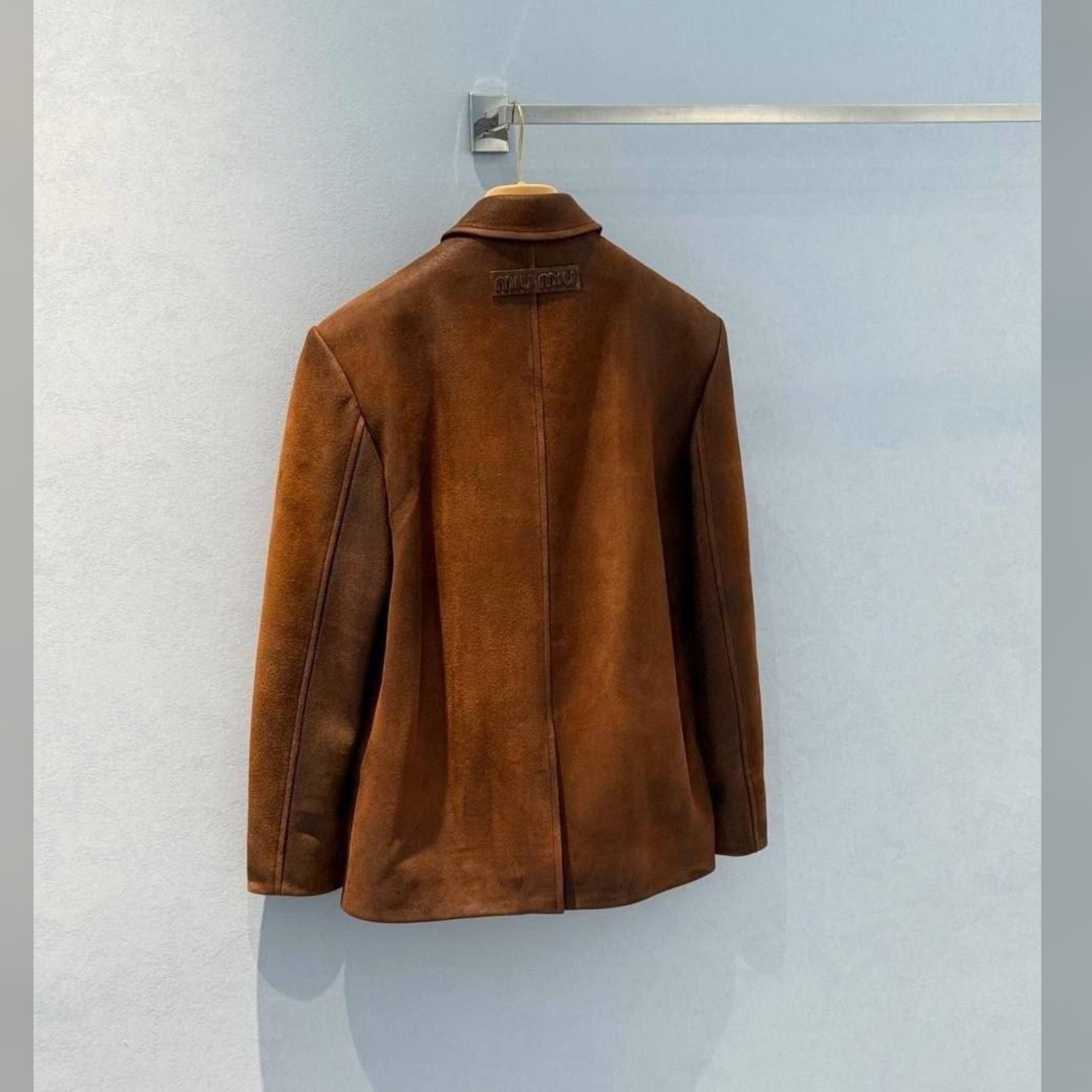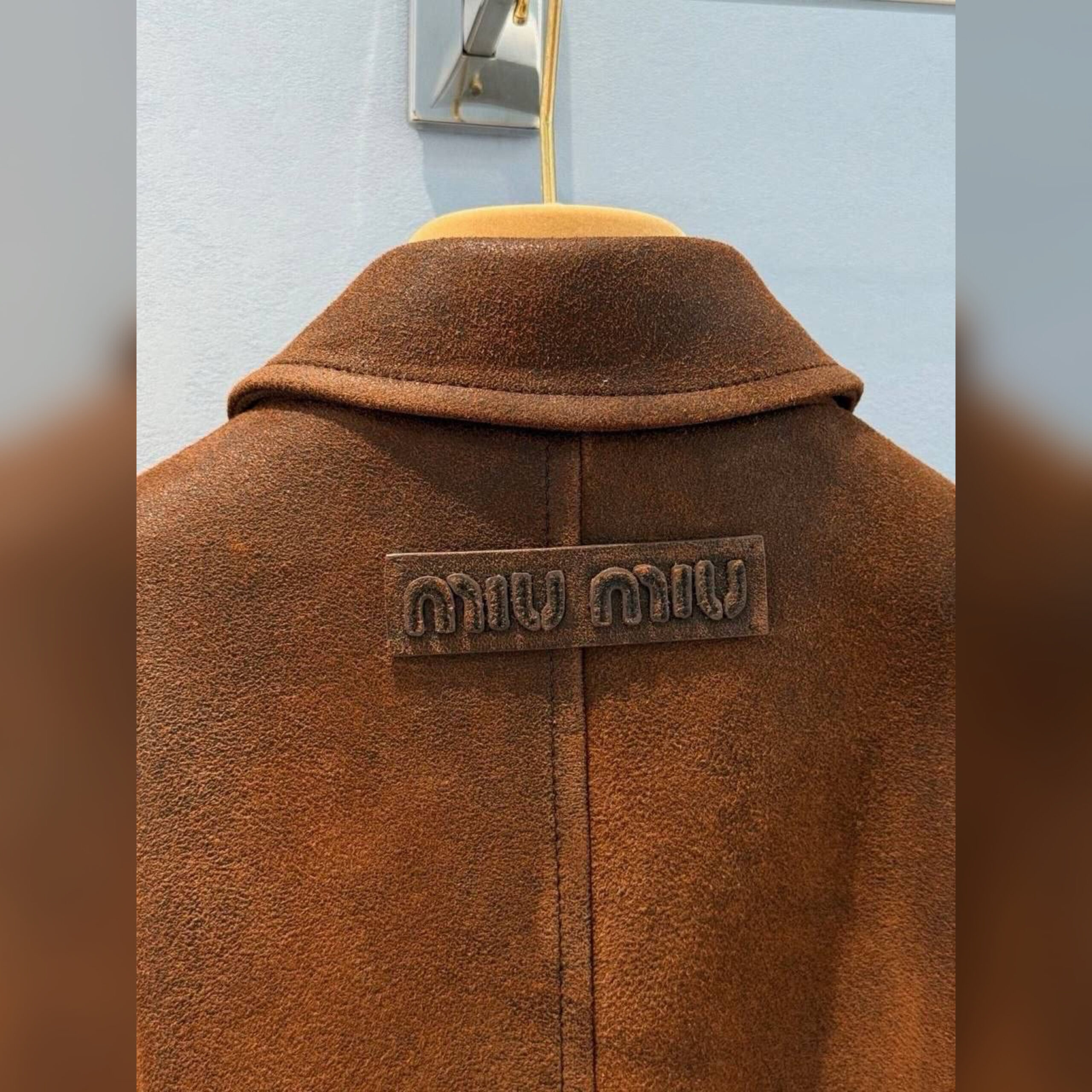 Миучча Прада подошла к созданию одежды по новым углом: она свела провокационность к минимуму, а на первый план вывела сдержанность, которую разнообразила фактурами. Например, для пошива свободного жакета дизайнер выбрала нежную бархатистую замшу.