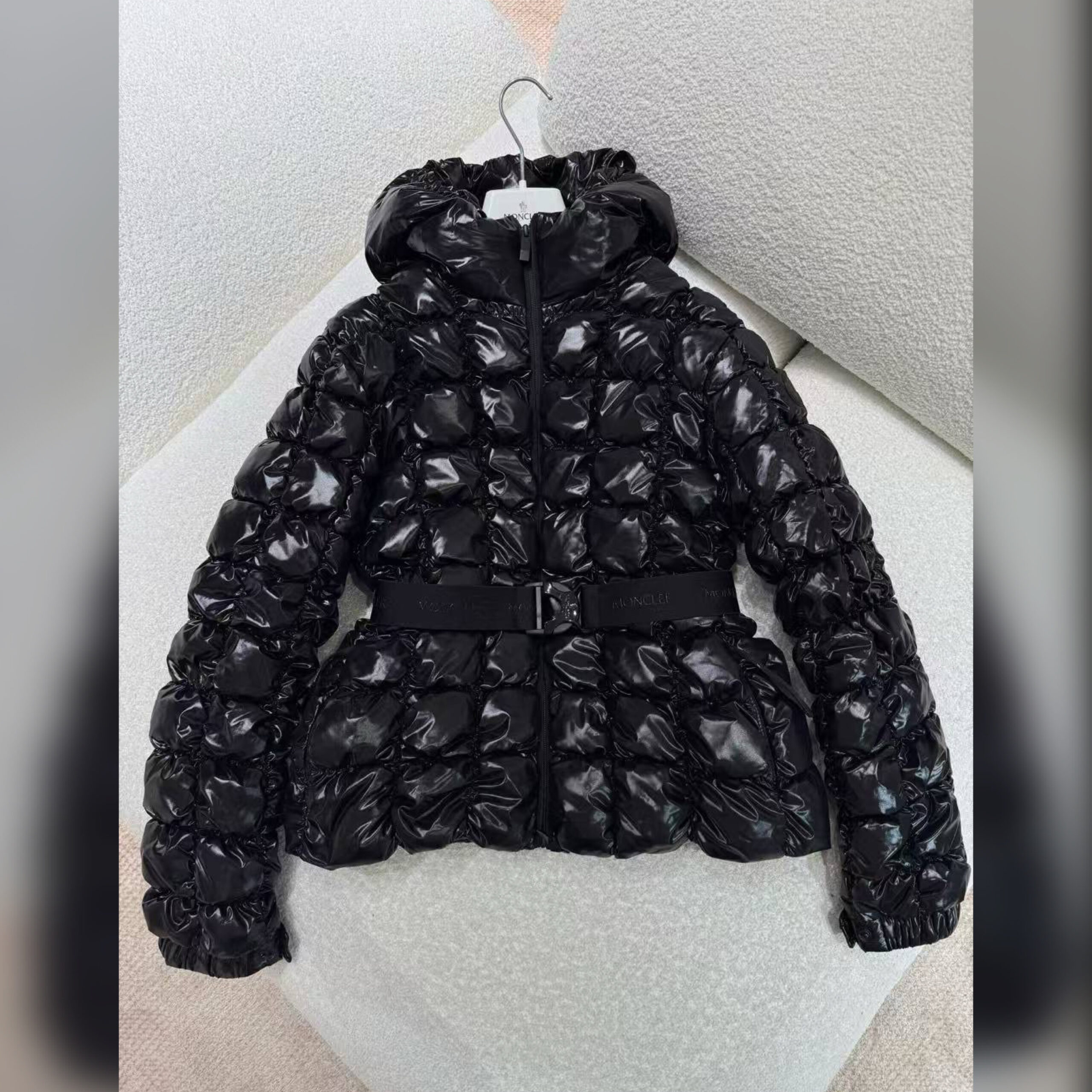 За счет наполнителя из натурального пуха, изделие легкое, тёплое и комфортное. Эластичный пояс подчеркивает линию талии, делая силуэт более женственным и утонченным.
