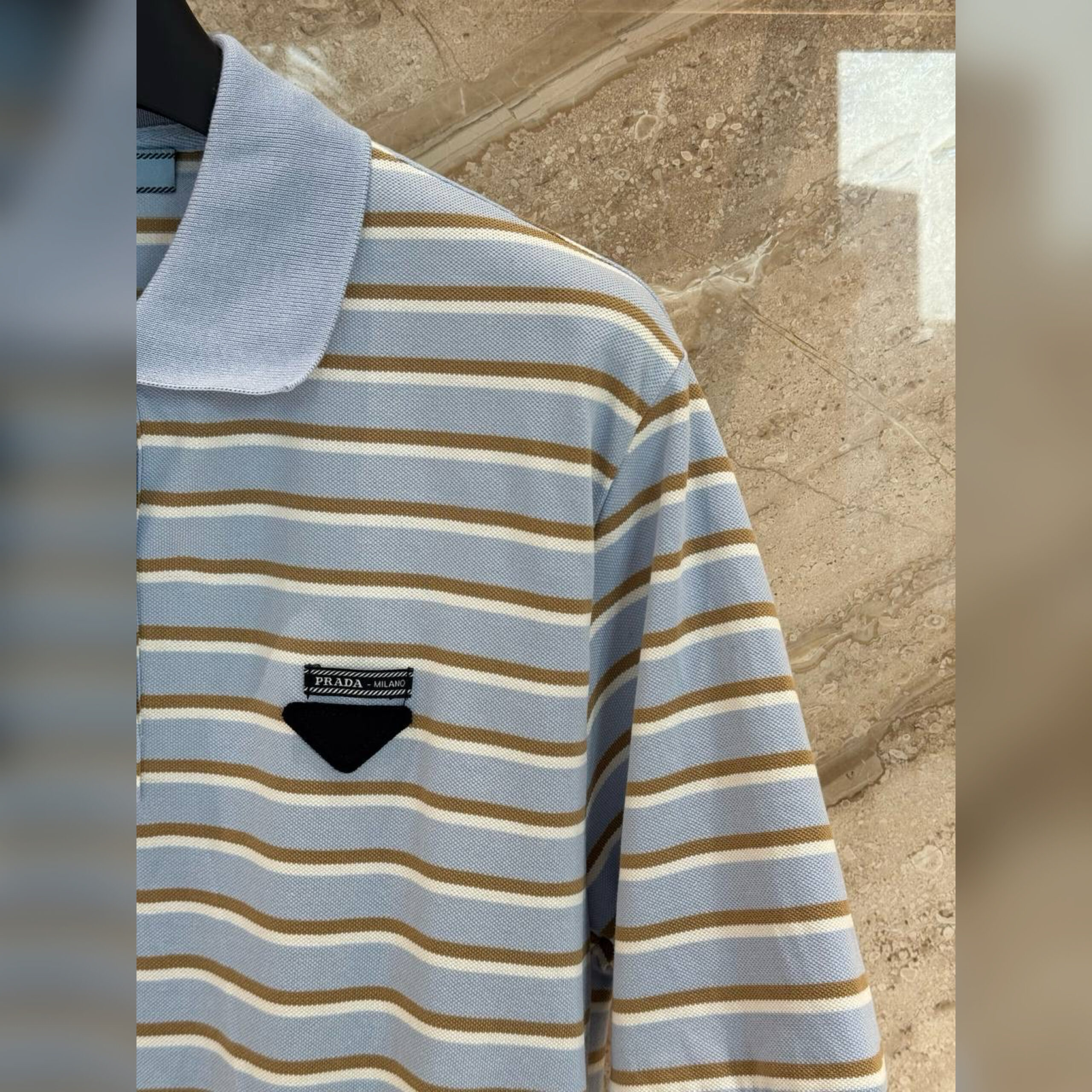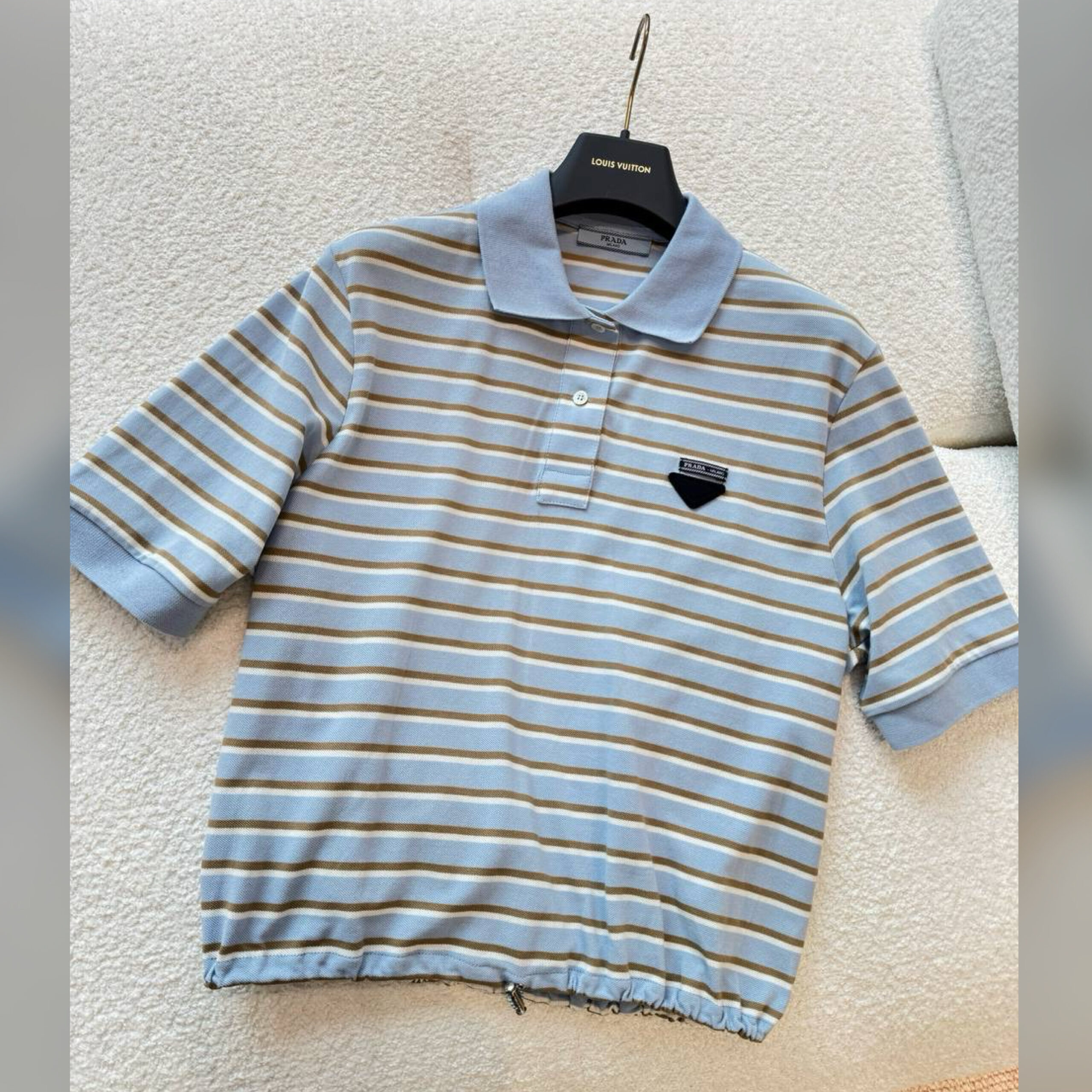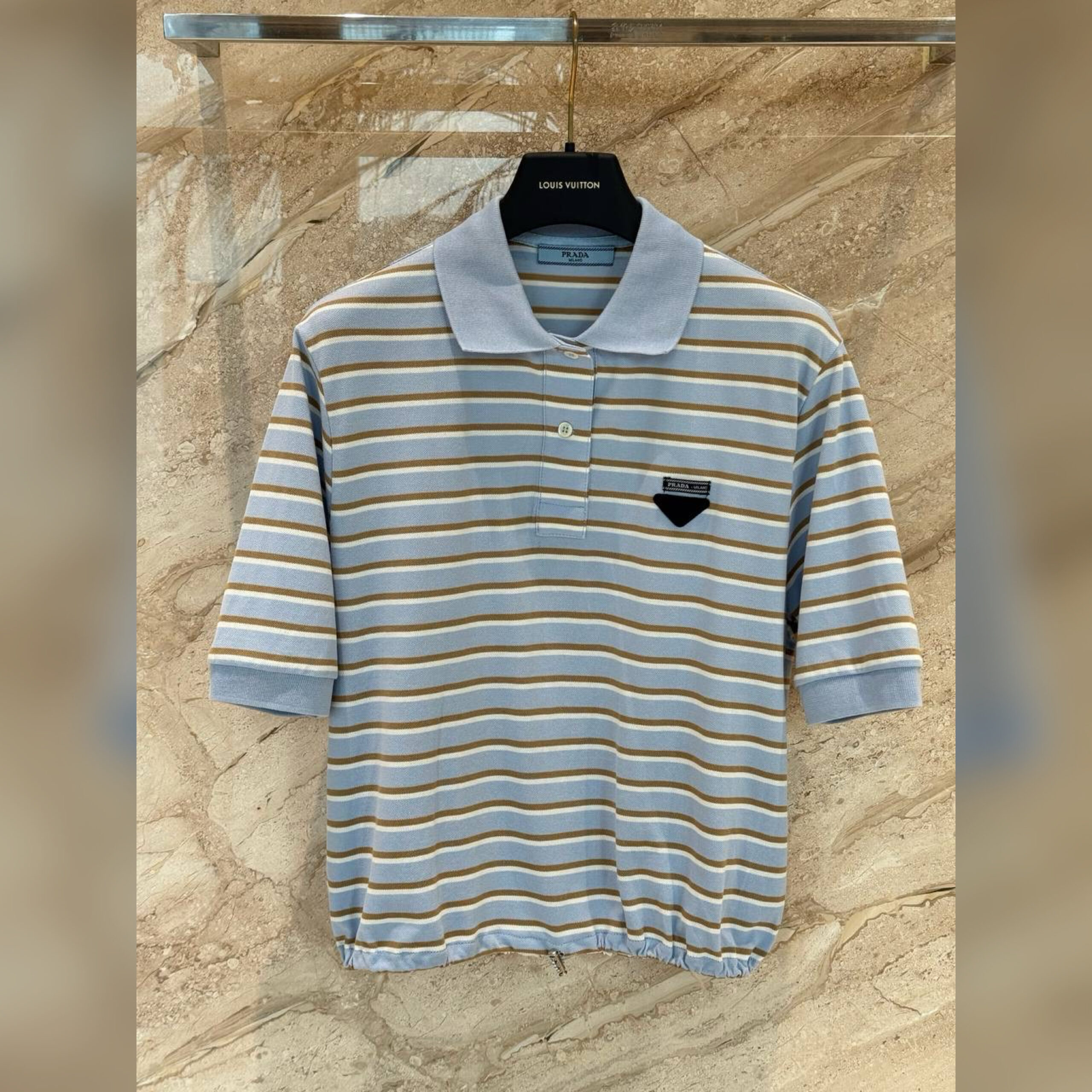 Ретро узор в виде полос в морском стиле формирует расслабленный характер укороченной рубашки-поло из мягкого хлопка.