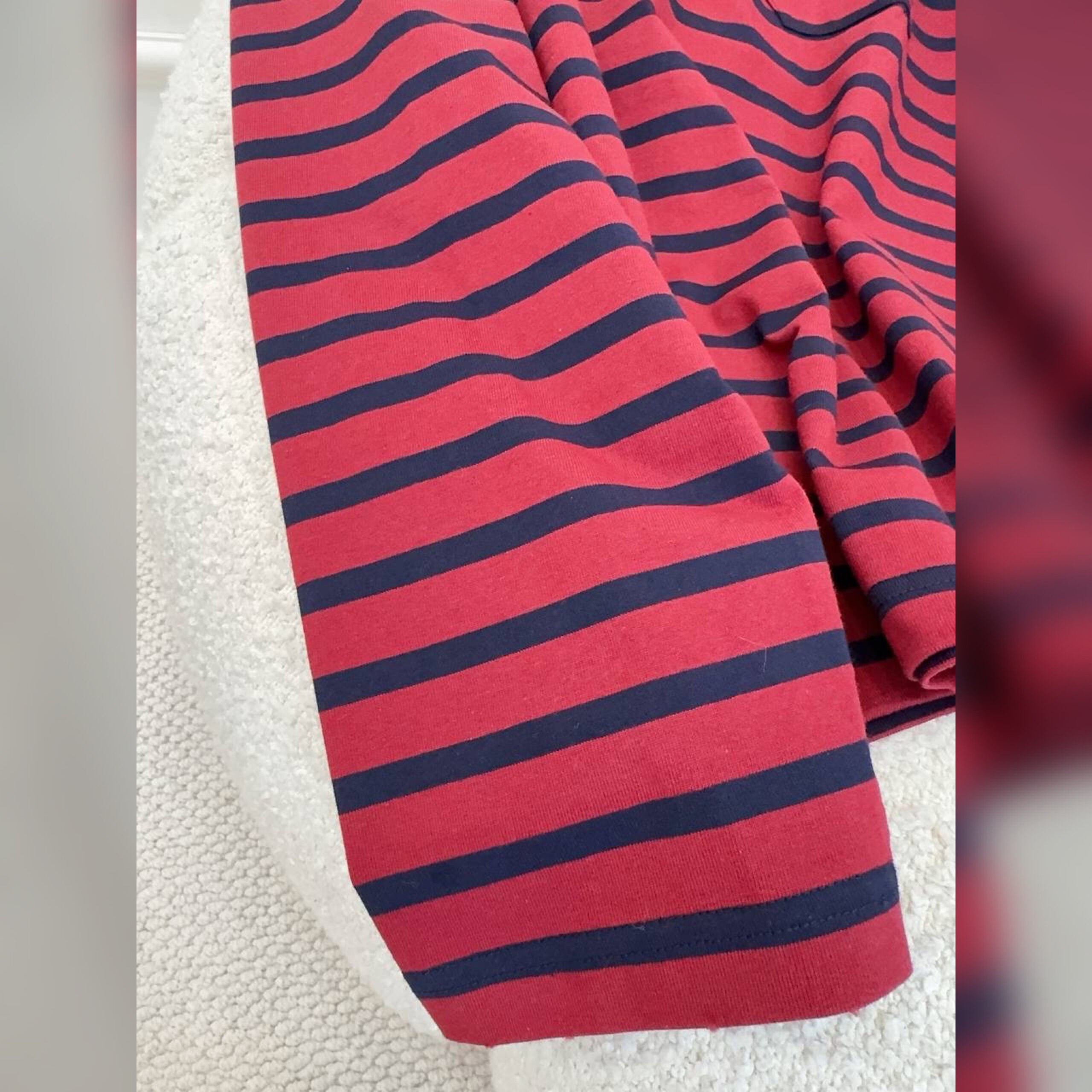 Лонгслив в яркую полоску станет акцентной деталью образа. Миучча Прада и Раф Симонс выбрали для пошива прямой модели хлопок, который хорошо пропускает воздух.