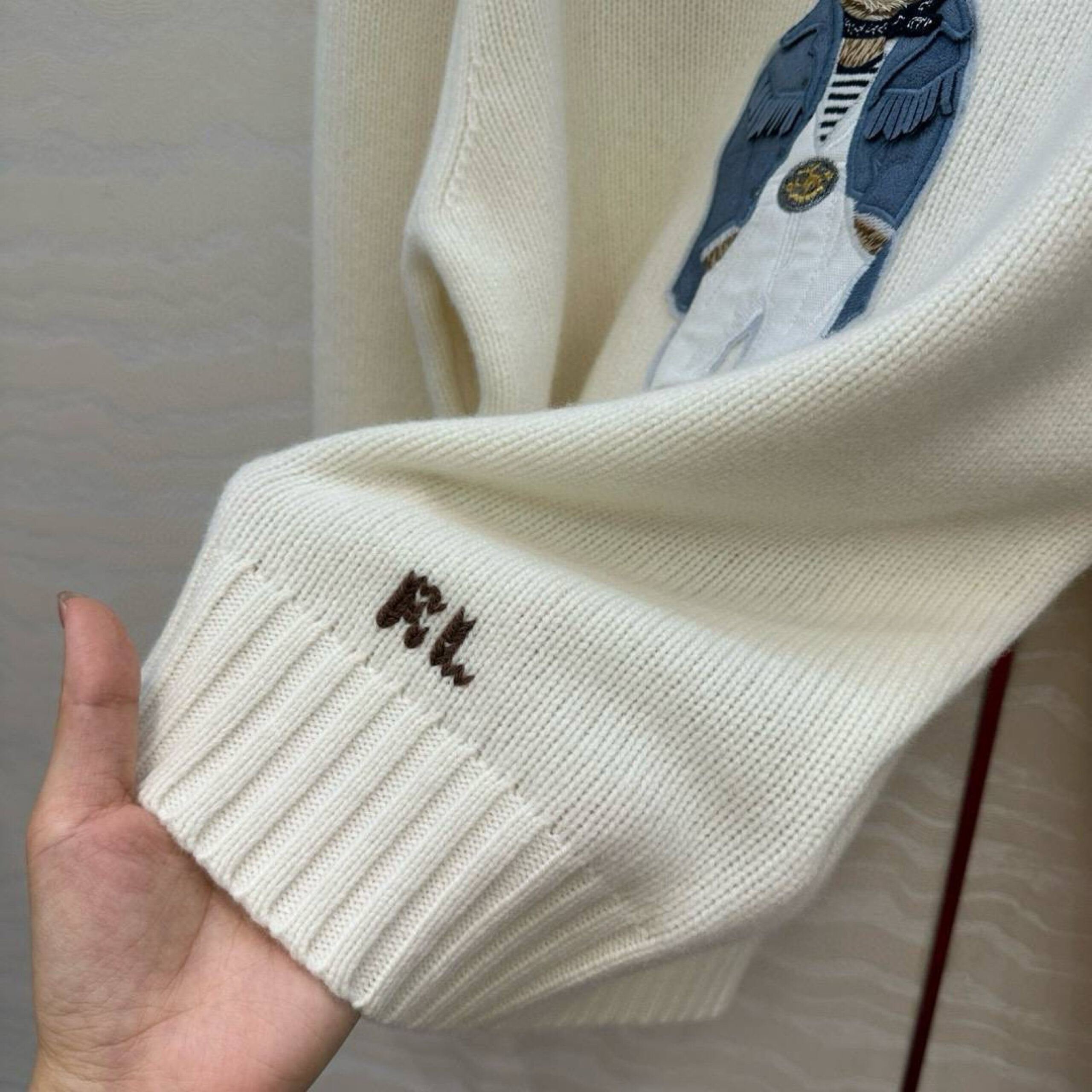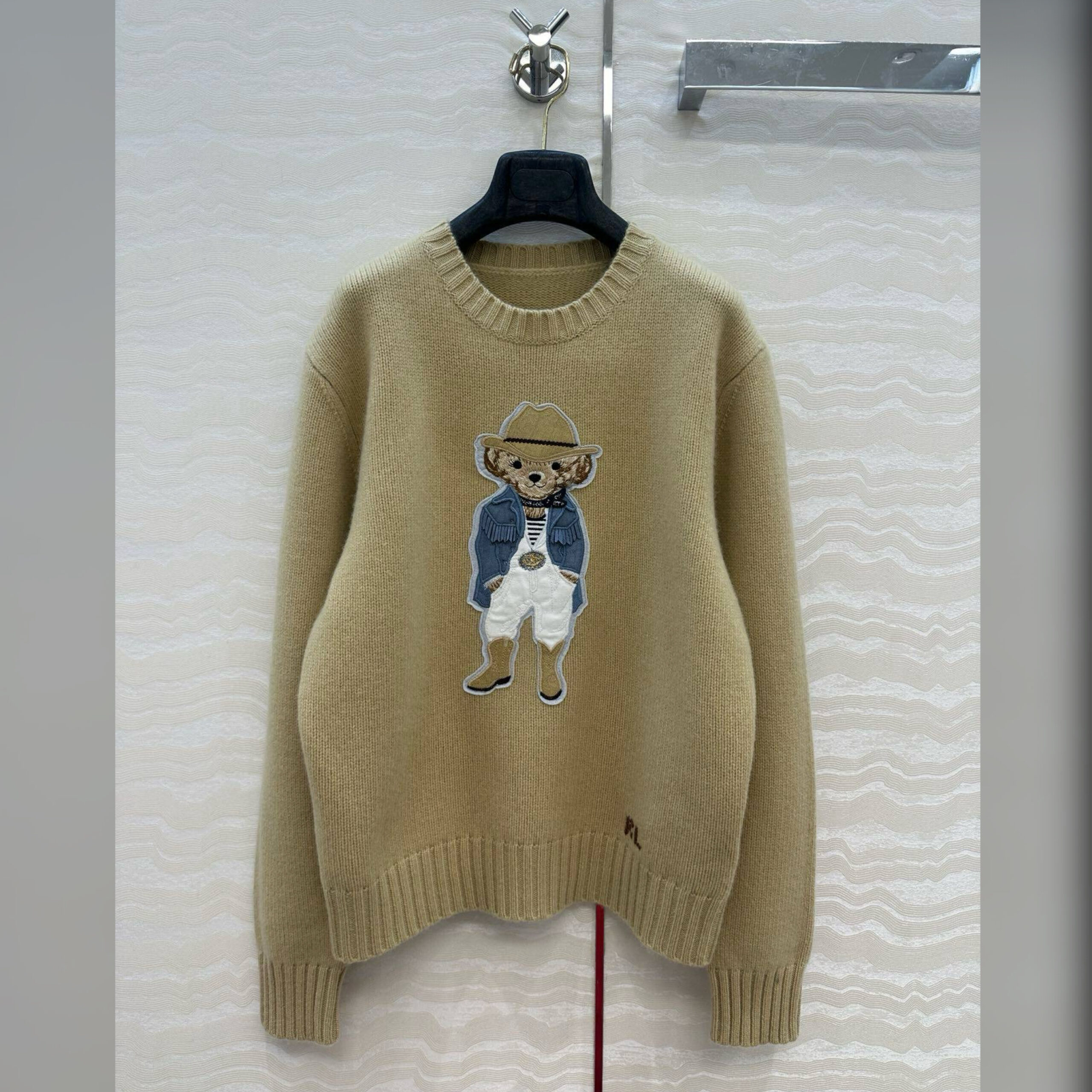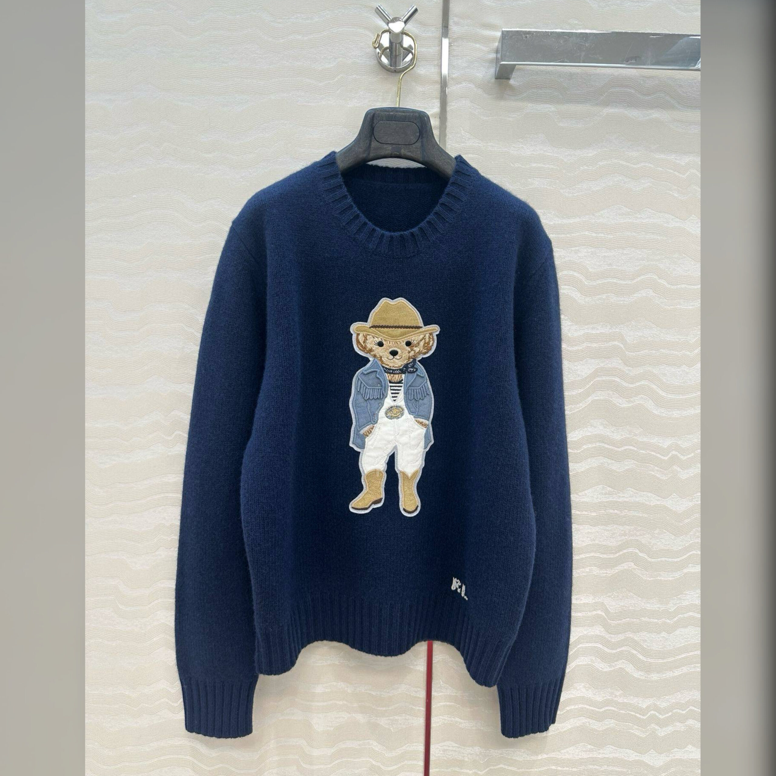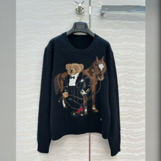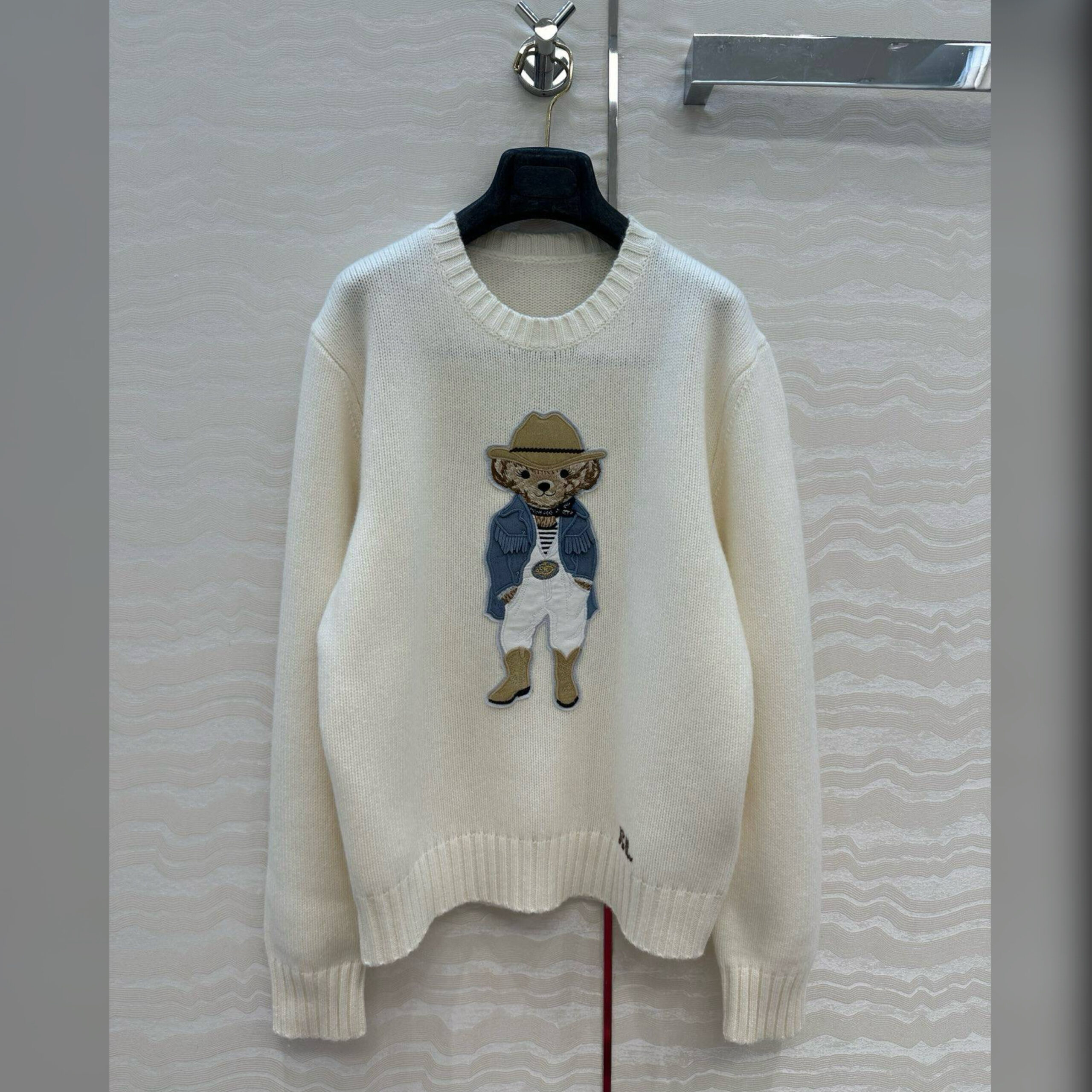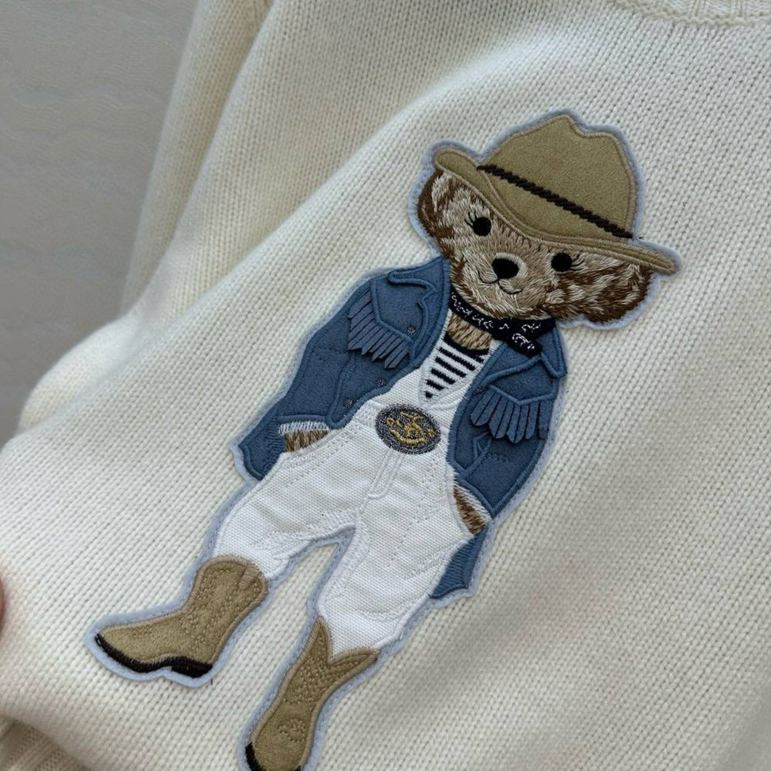 Базовый цвет свитера стал удачным фоном для аппликации в виде знакового персонажа Polo Bear, одетого в эффектный наряд.