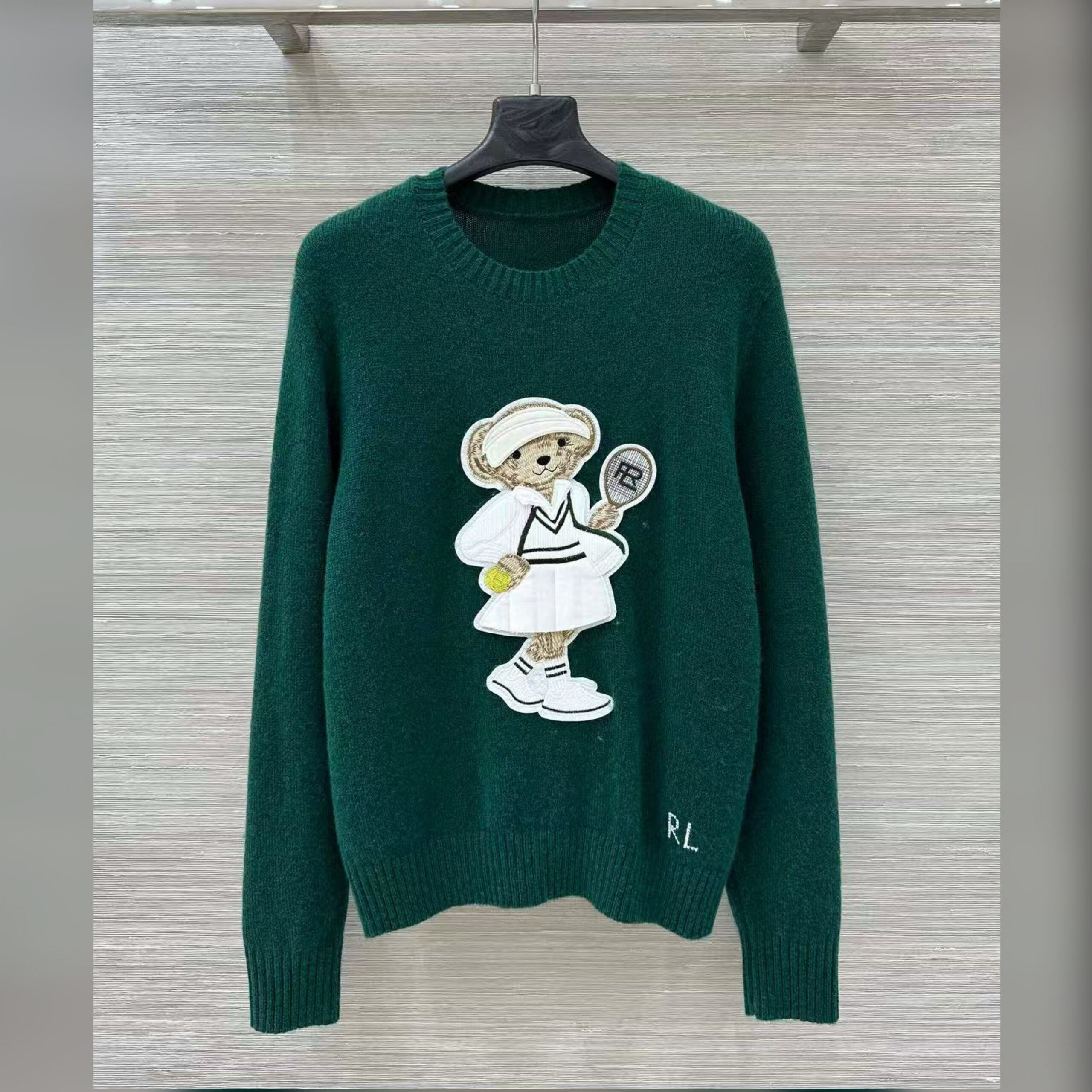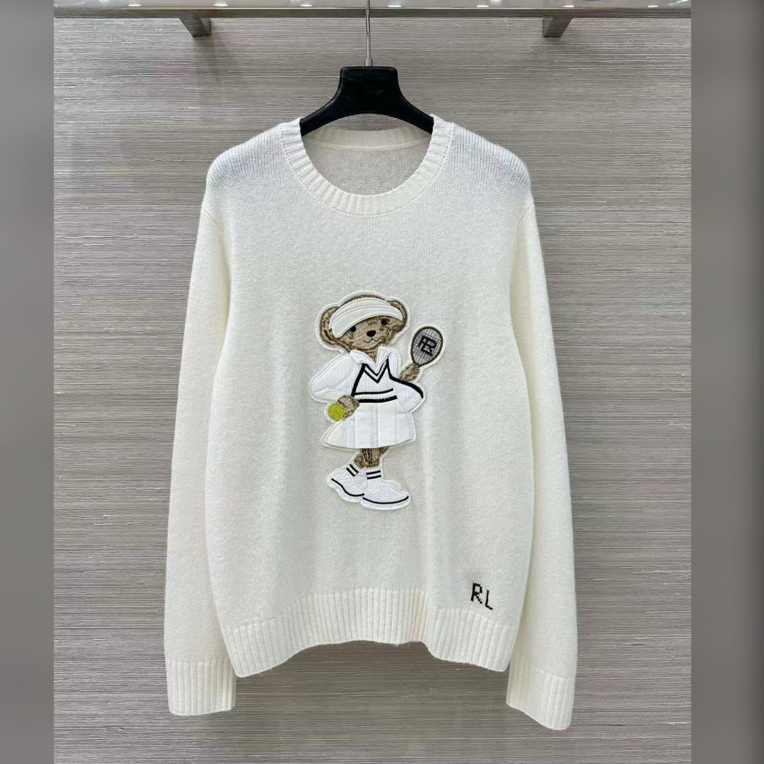 Крупный портрет персонажа Polo Bear перевел этот свитер с круглым вырезом из безупречной базы в разряд эффектных акцентов. Ральф Лорен одел талисман марки в теннисный наряд. Нежная пряжа, из которой выполнили модель, необыкновенно мягко окутывает тело.