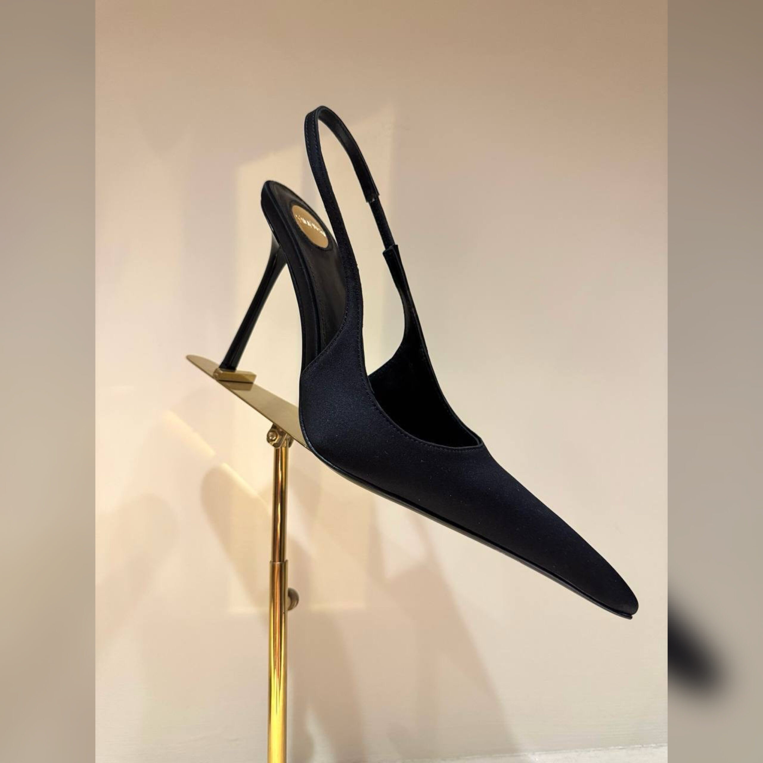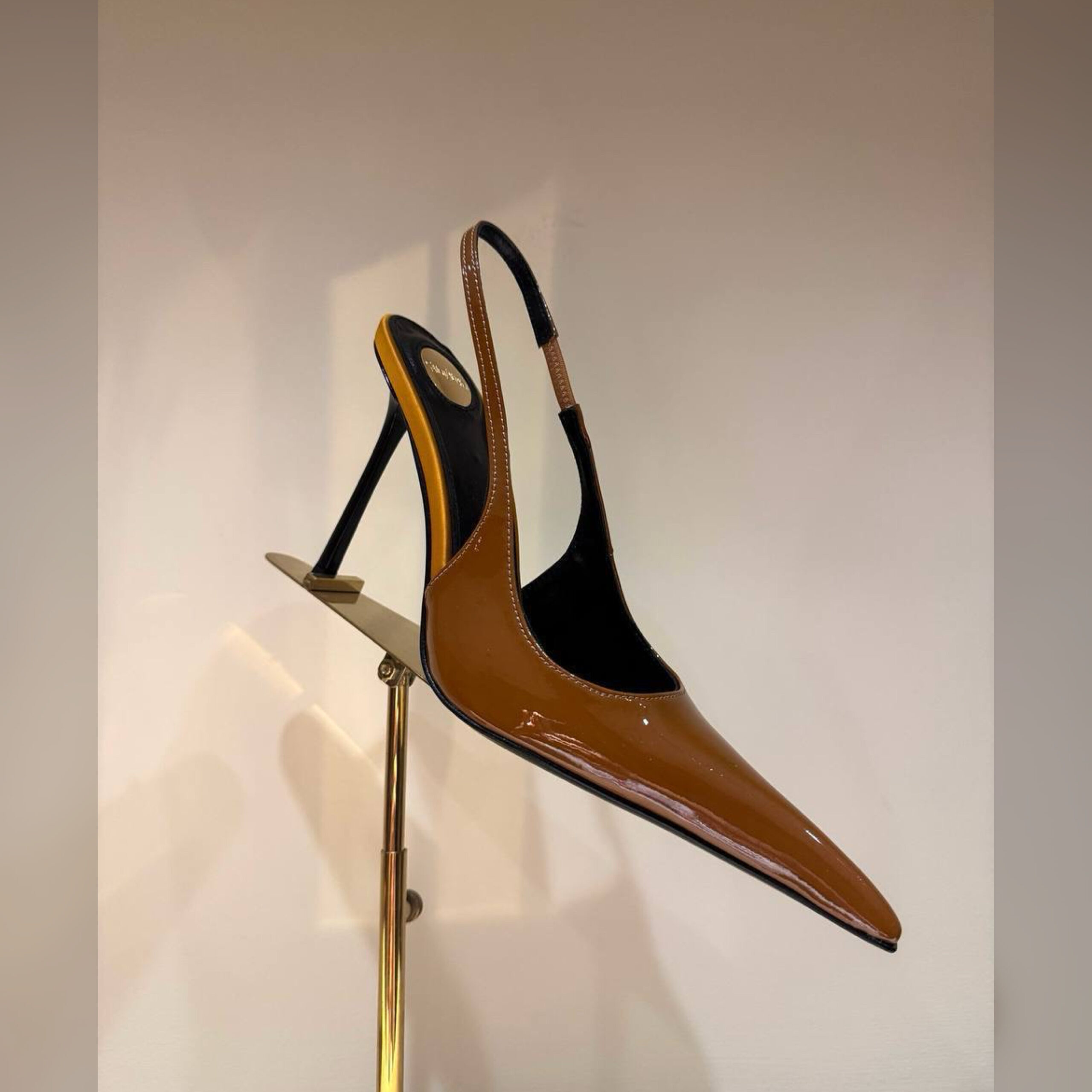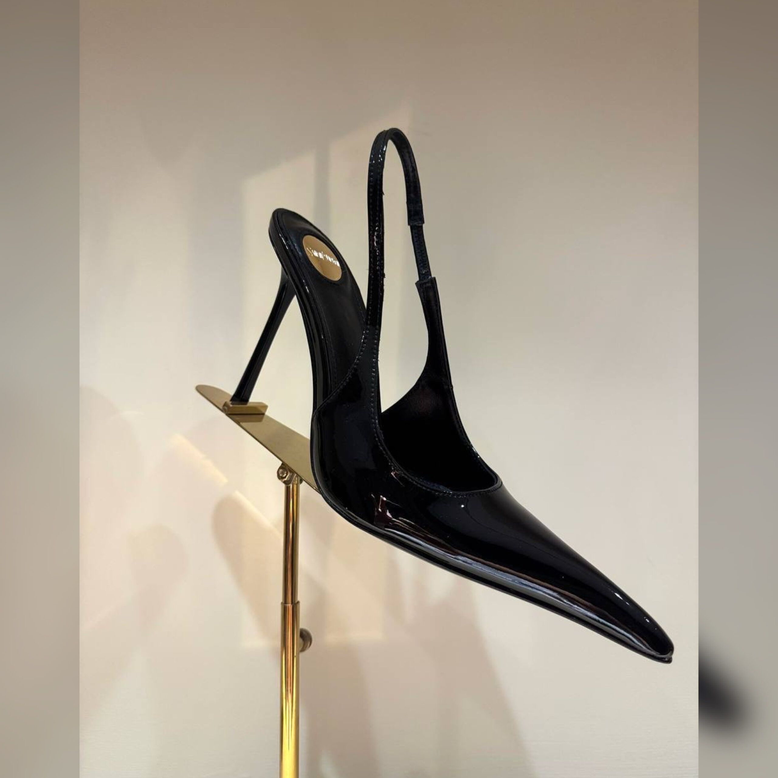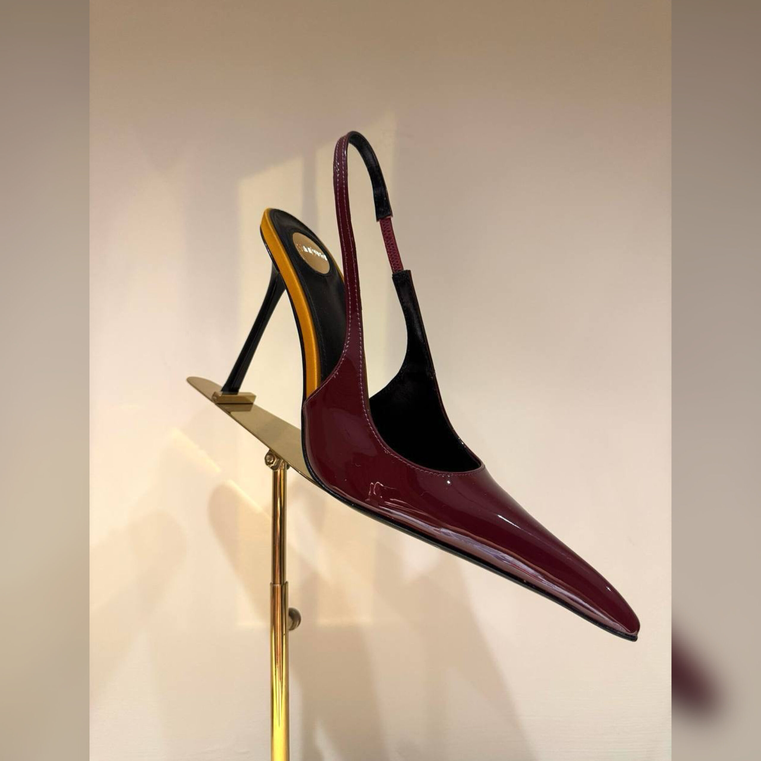 Туфли Vendome с зауженным мысом изготовили из гладкой телячьей кожи с лаковым покрытием и из фактурной замши. Модель с эластичным ремешком поставили на высокую шпильку.