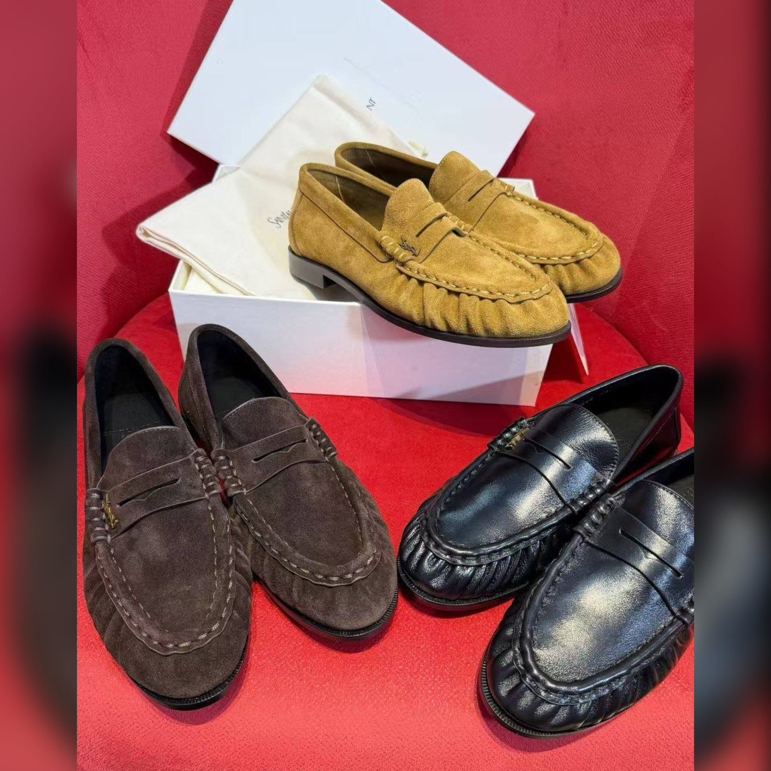 Энтони Ваккарелло сделал пенни-лоферы лаконичными настолько, насколько для него было возможно. Мастера марки, основанной Ивом Сен-Лораном, сшили модели с фигурной перемычкой на союзке и объемным швом на мысе из мягкой кожи и бархатистой замши.