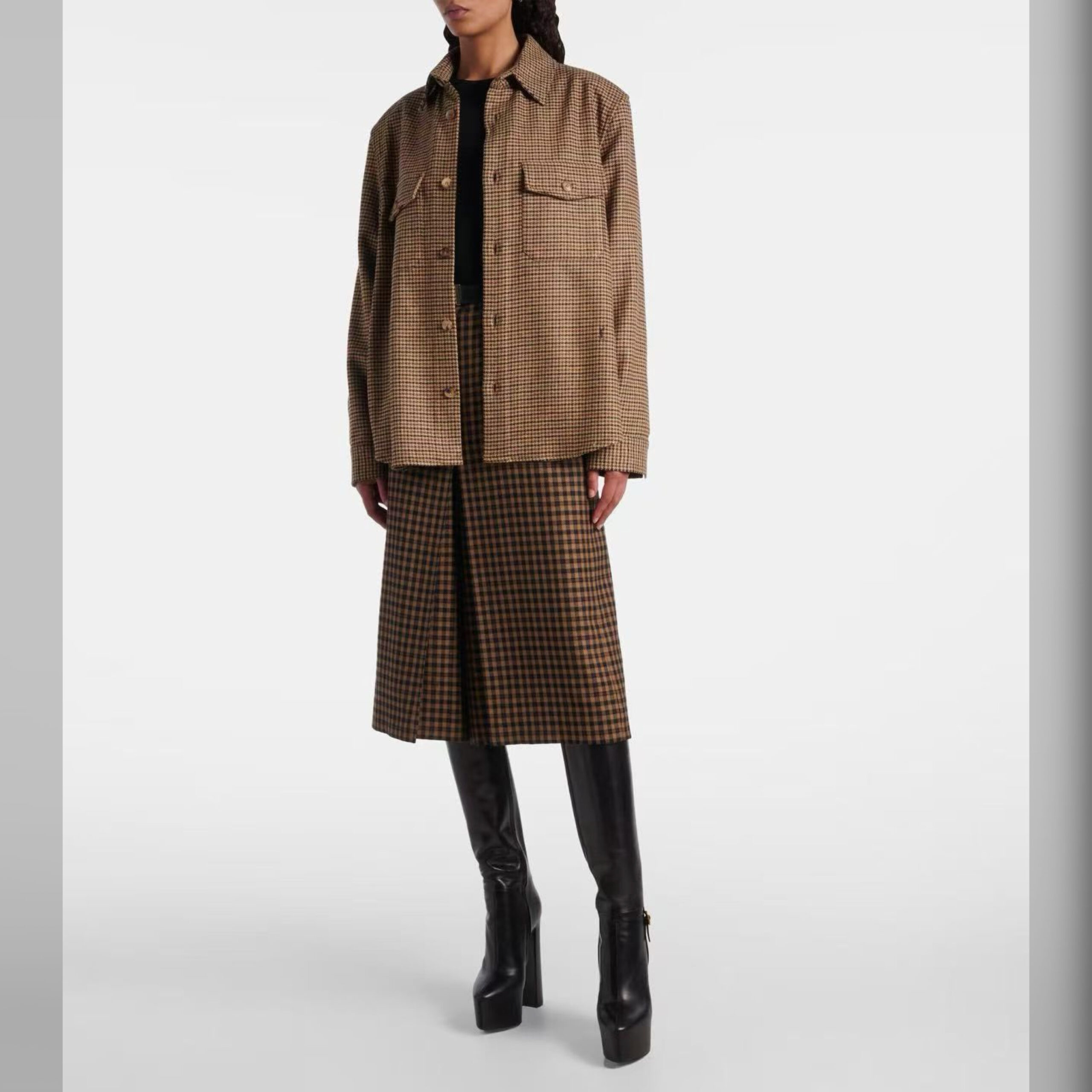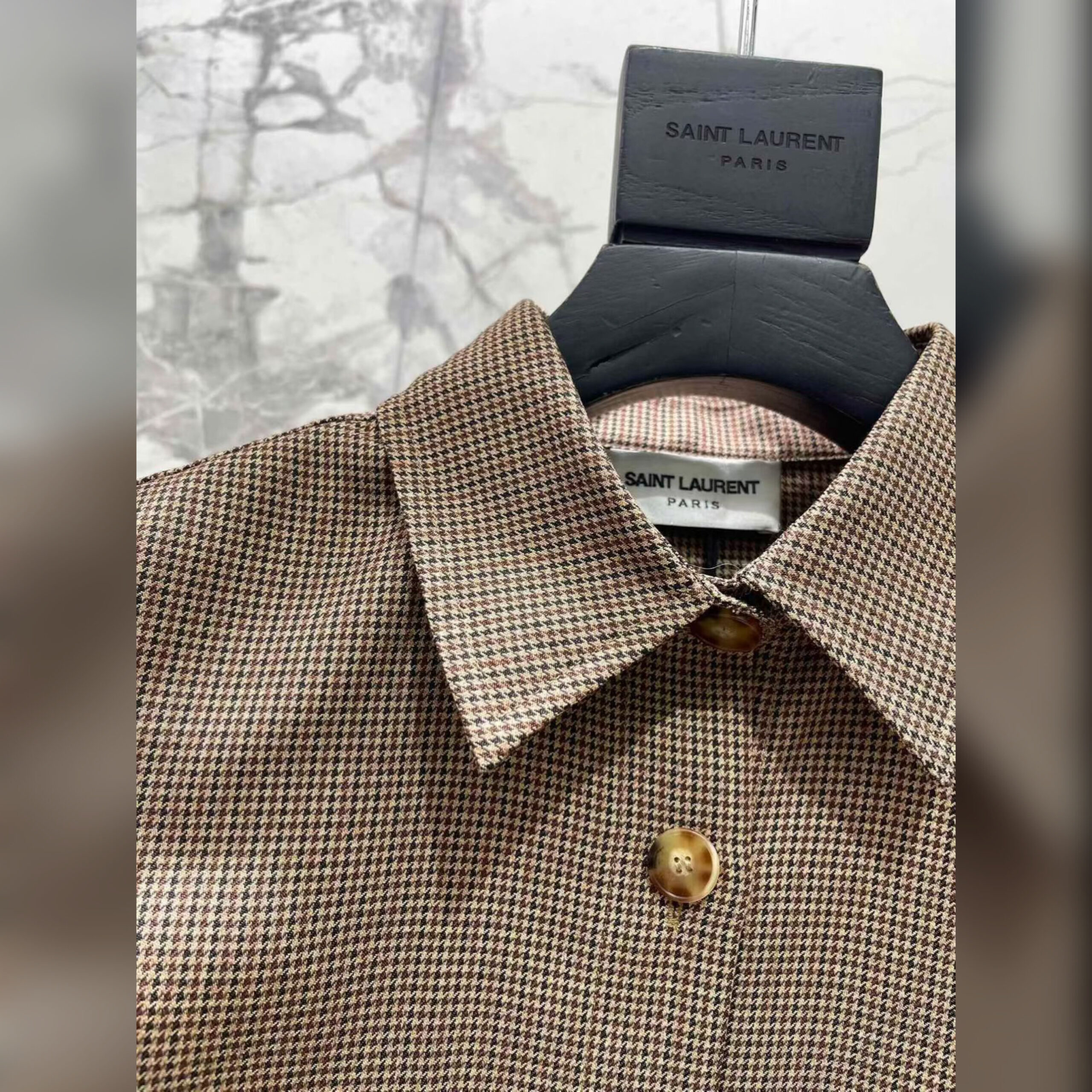 Рубашка с мелким узором Pied-de-poule выглядит слишком неформально для офиса, зато она идеально дополнит непринужденный повседневный образ с футболкой, брюками и кедами. Для пошива модели из осенне-зимней коллекции марки, основанной Ивом Сен-Лораном, использовали мягкую ткань. За счет шерсти в ее составе, вещь приятно ощущается на теле и поддерживает оптимальную температуру, не перегревая.