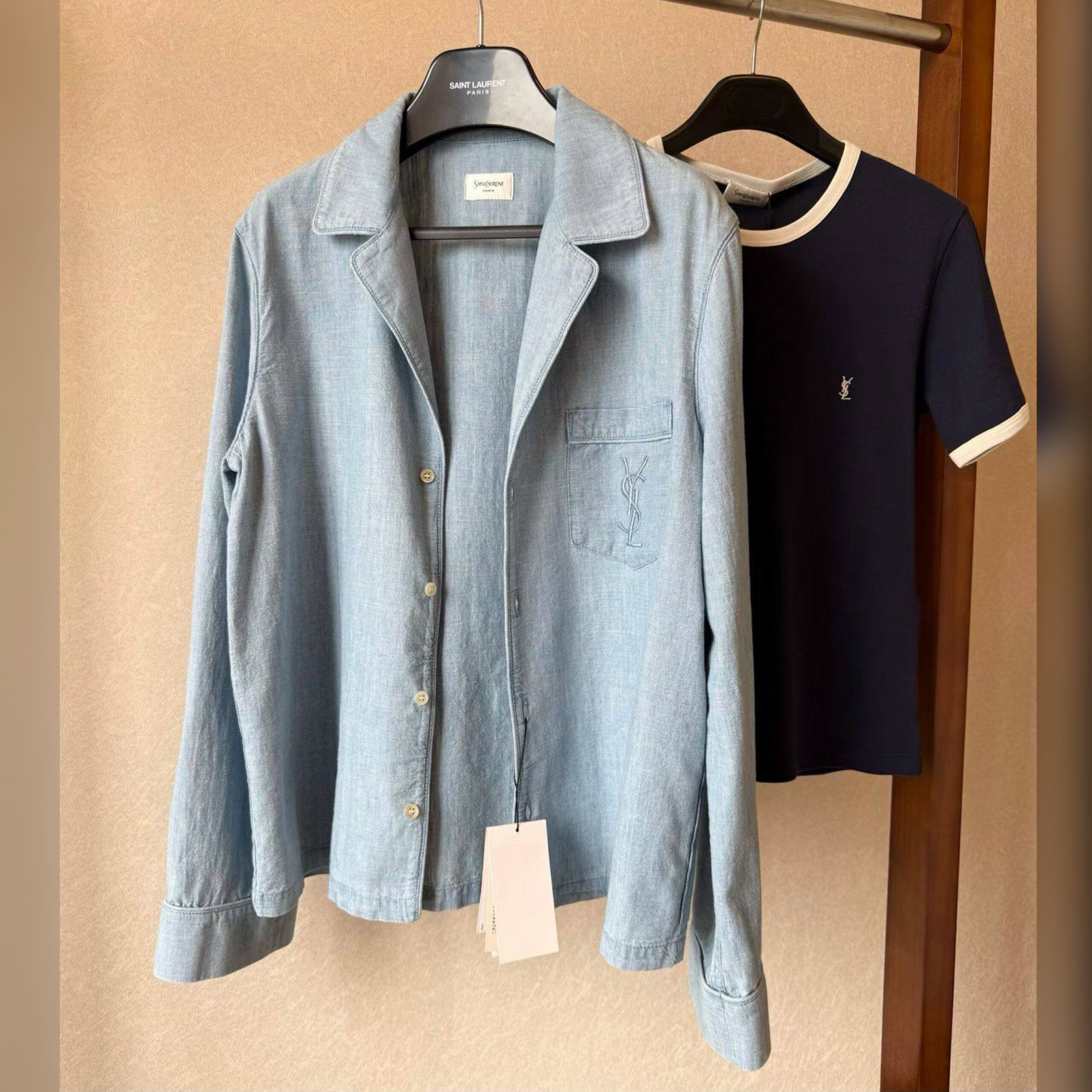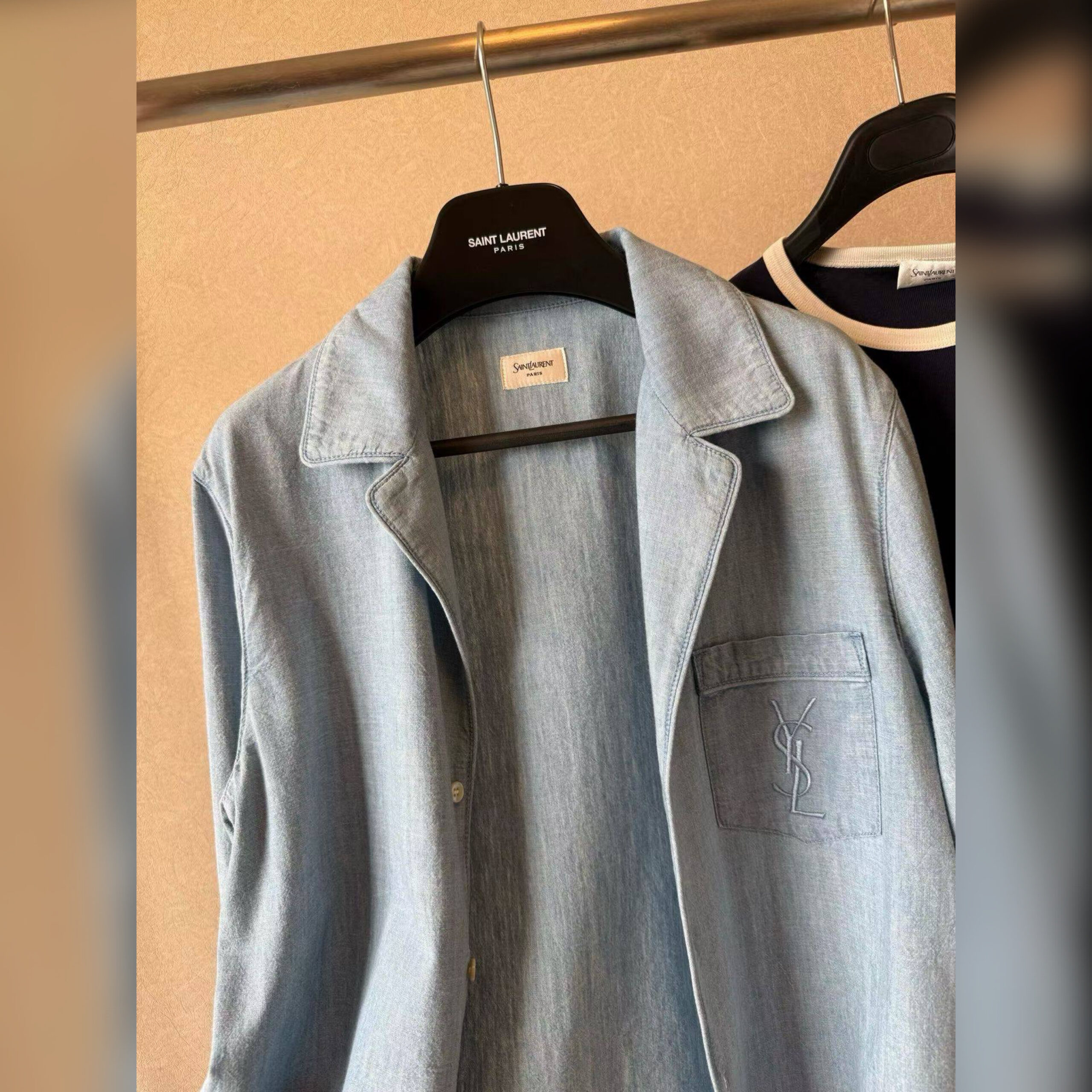Для пошива модели с лацканами, как у жакета, мастера марки, основанной Ивом Сен-Лораном, использовали мягкий хлопковый деним.