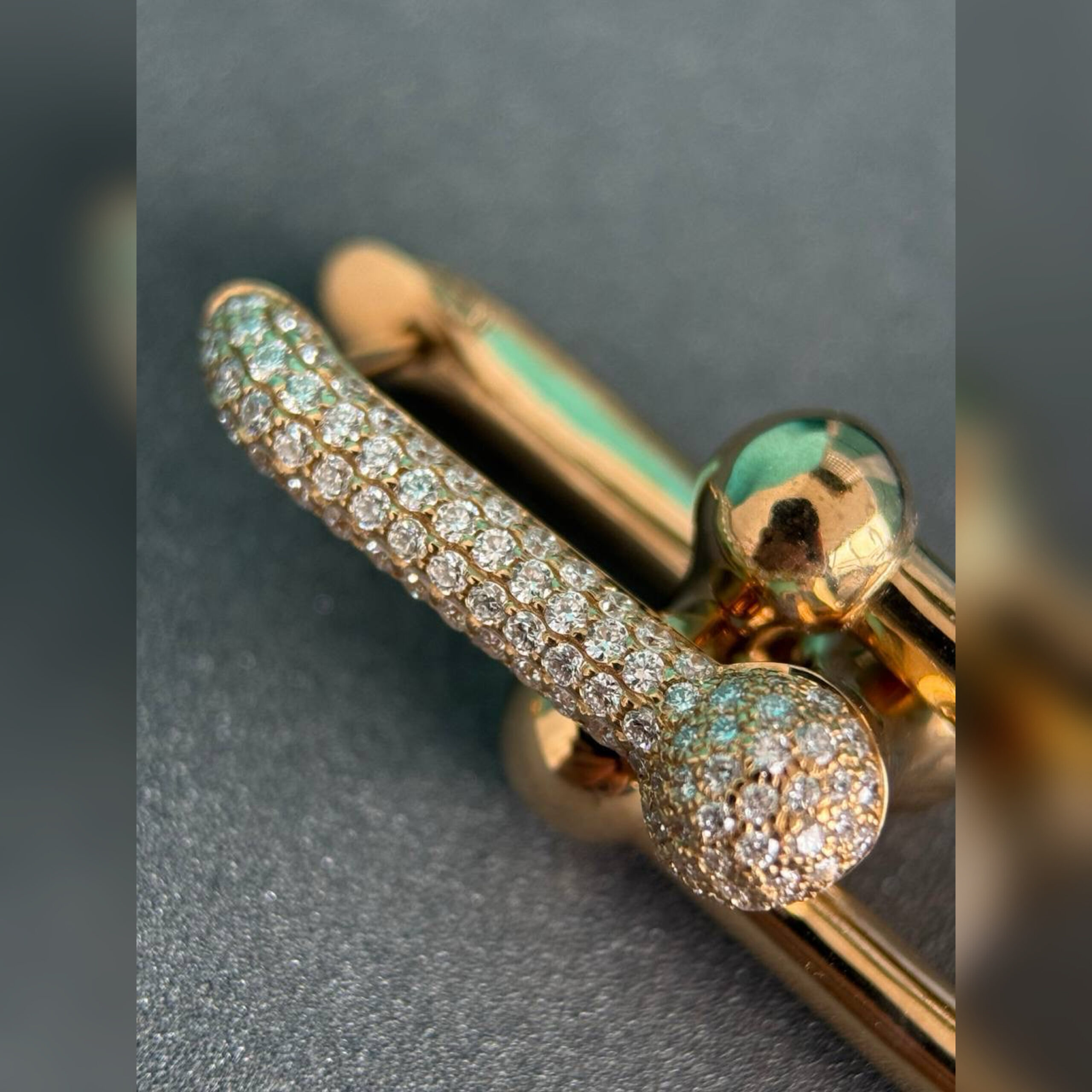 Tiffany HardWear — символ преобразующей силы любви. Вдохновленная классическим браслетом 1962 года из архива ювелирного дома коллекция HardWear воплощает собой неизменную устойчивость и непоколебимость духа. Эффектные серьги из золота 18 карат отличаются фирменными литыми звеньями коллекции с паве из бриллиантов, закрепленных мастерами Tiffany с вниманием к деталям.